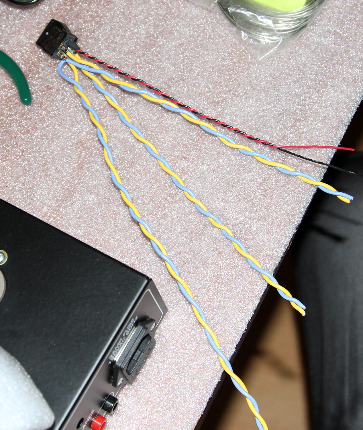 - отрежьте 35 дюймов жёлтого и синего провода;