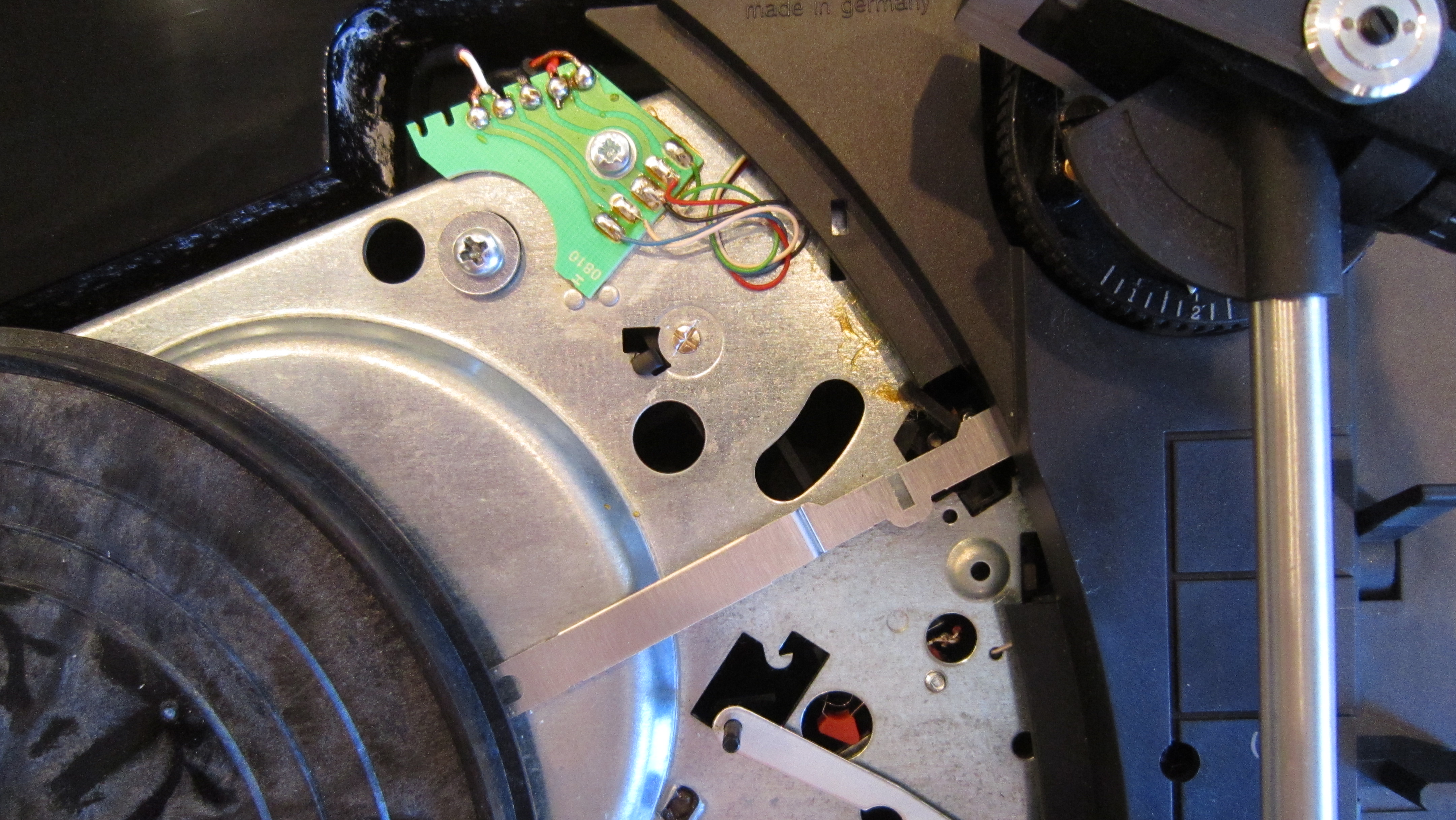 DUAL получил новые ножки. Задача отсоединения мотора от шасси проигрывателя завершена.