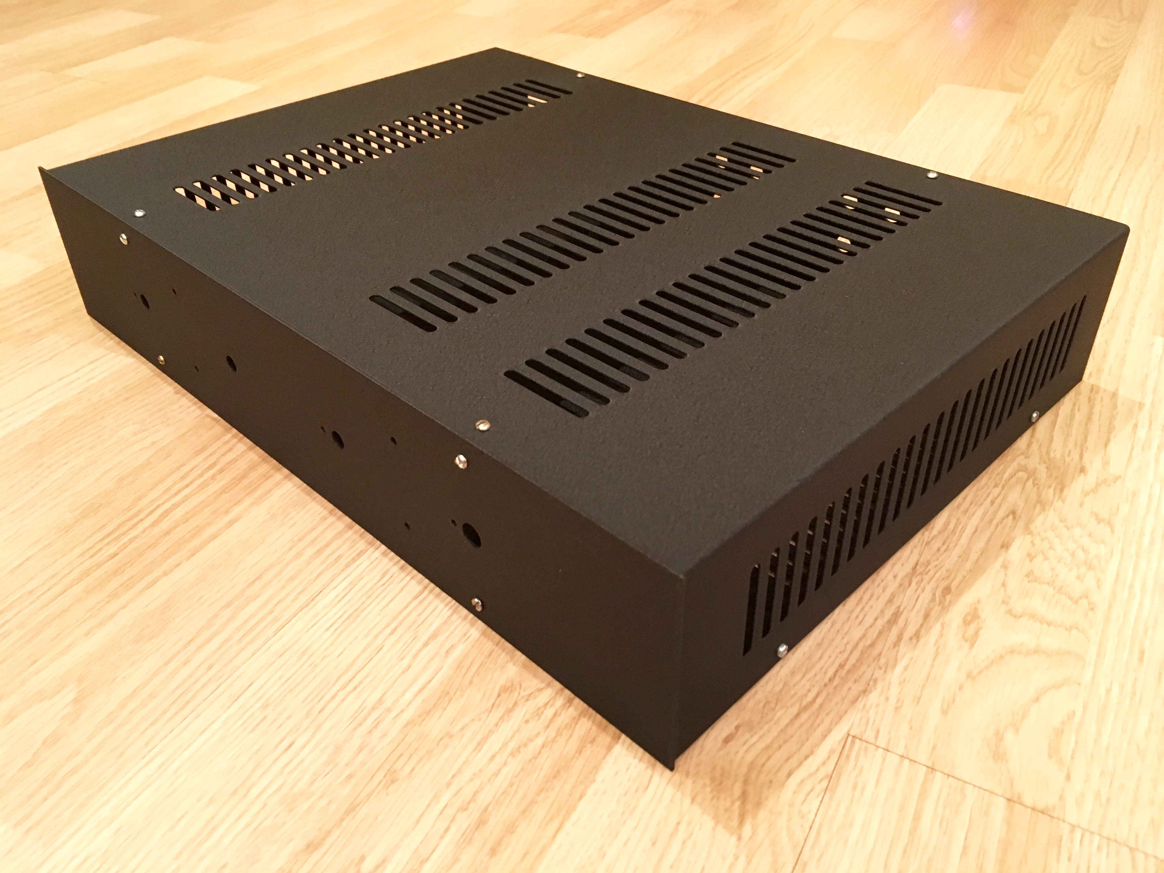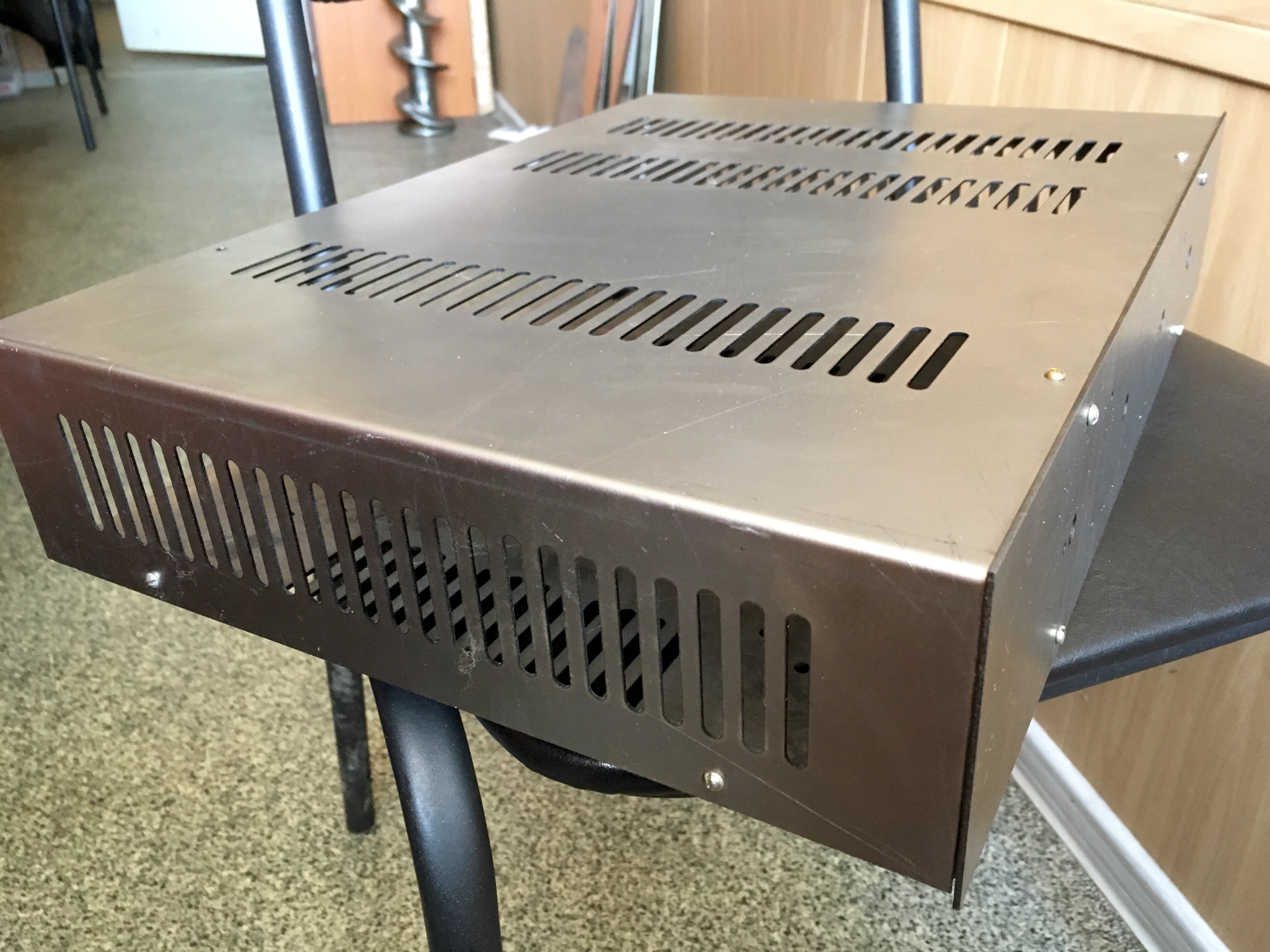 Вид корпуса (и крышки моноблоков) вдохновил к осознанию другой конструкции, из перфорированного листа. Скажу так, я ее уже готов создать. И она совсем другая. Эх, жаль пока не подо что. Я бы прям себе хотел именно из перфорации, но для этих устройств не хочу отступать от разработанного дизайна "перфорация, как проекция ручек" и "планетарные круги-орбиты Евгения". Как я представляю это, круто будет. И лампы и весь монтаж виден внутри. Руки чешутся его сделать...