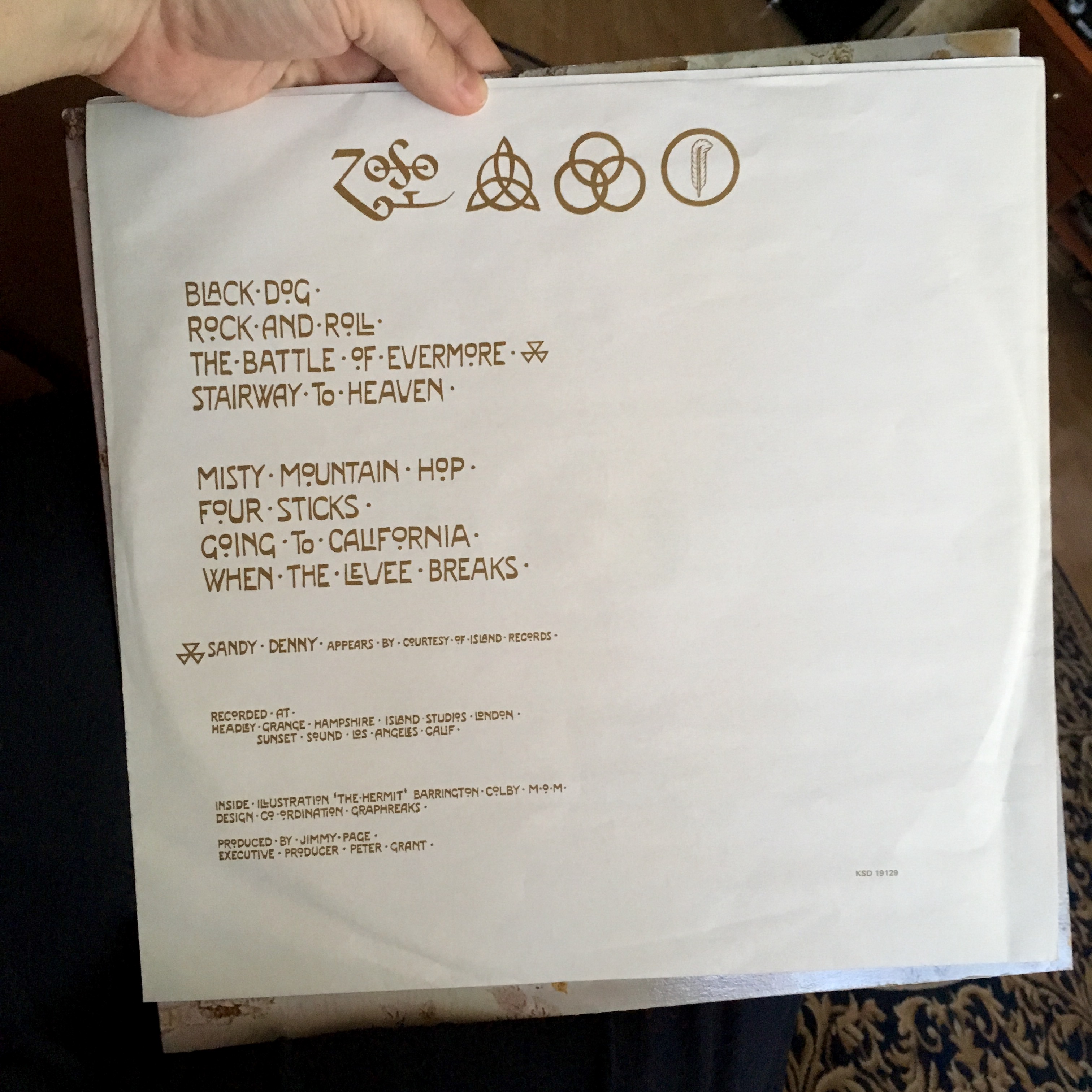 Это не простая пластинка, не все мои картриджи могут воспроизвести ее так, как я ее слышу. Но, установленный сейчас Empire D4000 вполне с этим справляется. В записи много низкочастотных звуков и при плохом воспроизведении, это звучит гулко! И верха тогда не хватает. Я слушал такую пластинку в другом издании, там звук был более привычный, но не такой интересный. Я хотел завершить сегодняшнее длительное прослушивание таким заначимым финальным аккордом, как "Лестница на небеса". Подал на усилители (как серьезно звучит во множественном числе!) полный сигнал. Без ослабления аттенюатором. И уселся поудобнее...