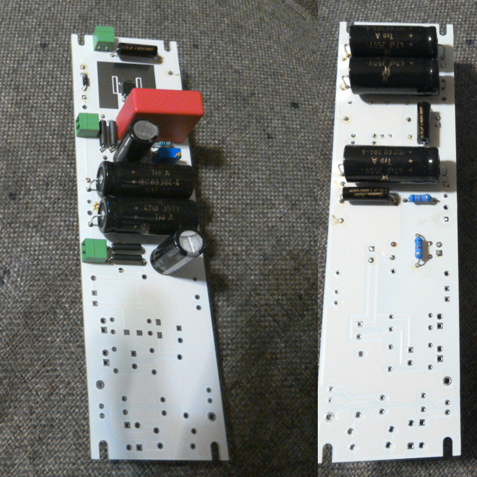 Я вот смотрю и начинаю сомневаться в своем желании медь оставлять внутри корпуса открытой (конечно, пока не ясно, как она вообще будет выглядеть). На черном корпусе поставим белые платы с черными конденсаторами - это стильно!