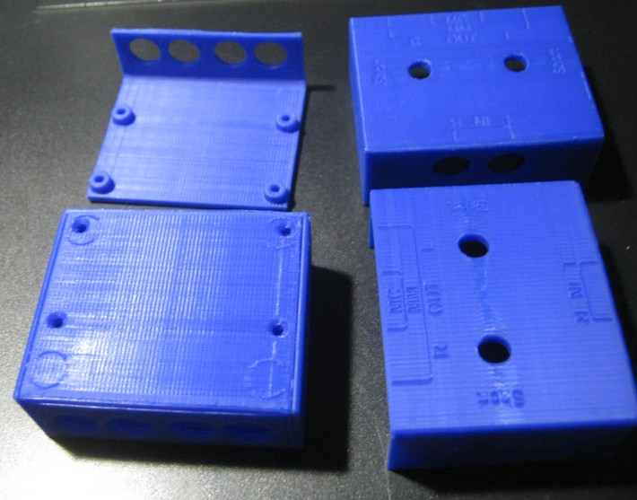 Внутри корпуса печатаются две подпорки для крепёжных стоек с отверстиями, и две подпорки (заглушки) внутри отверстий под тумблера. Видно на нижнем фото.