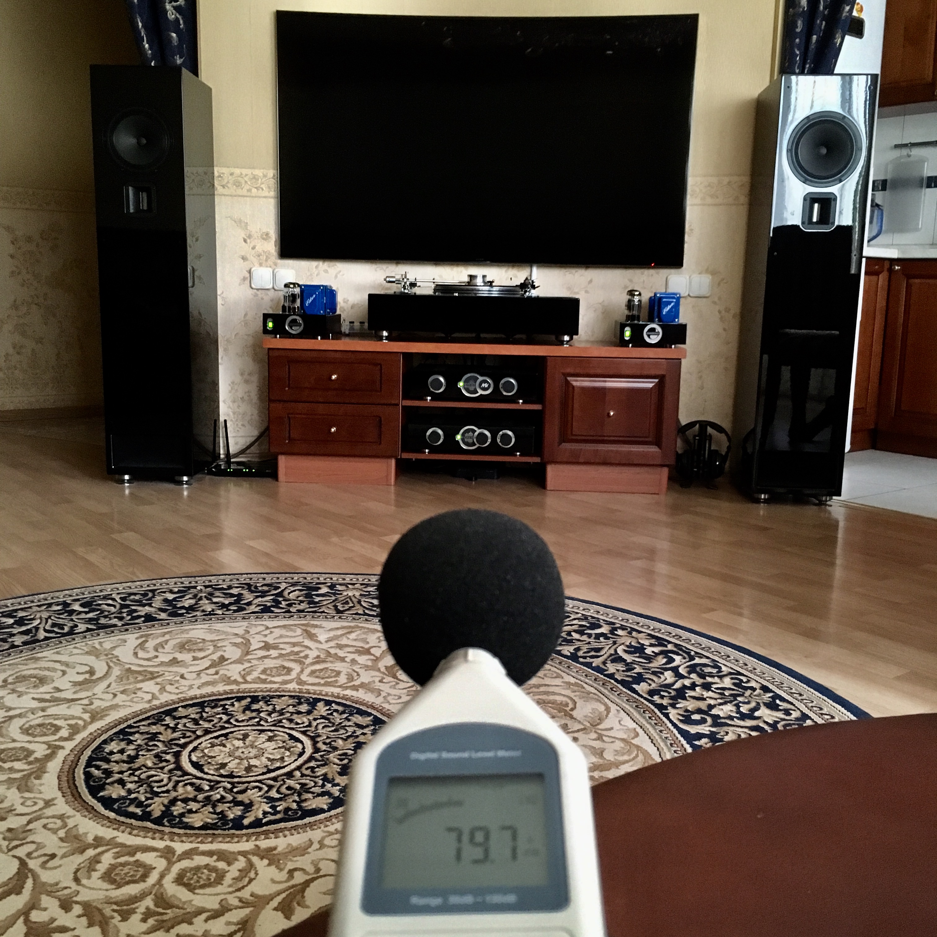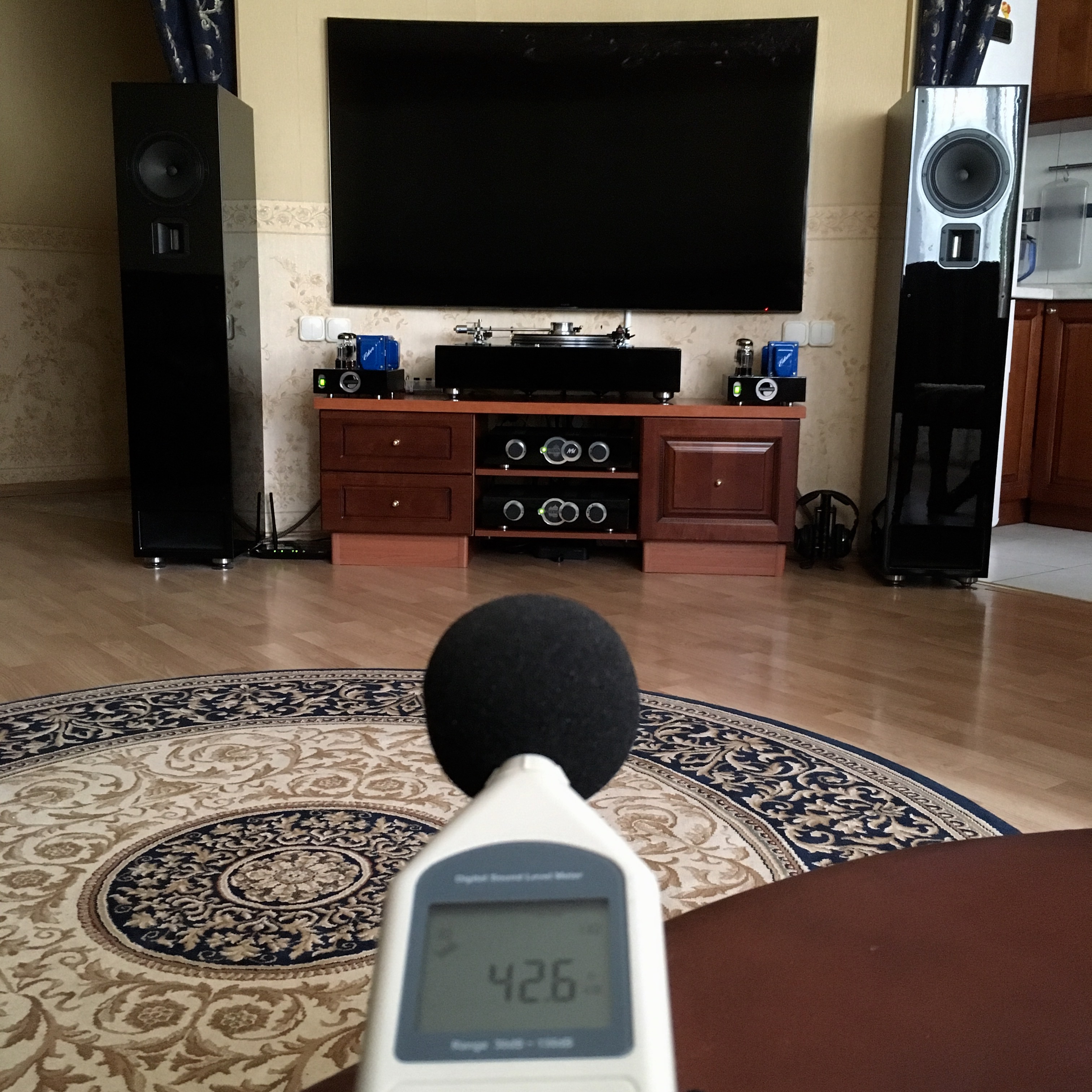Максимум около 80 дБ (замер по разным музыкальным композициям), положение ручки громкости чуть ниже, чем при вчерашних испытаниях: