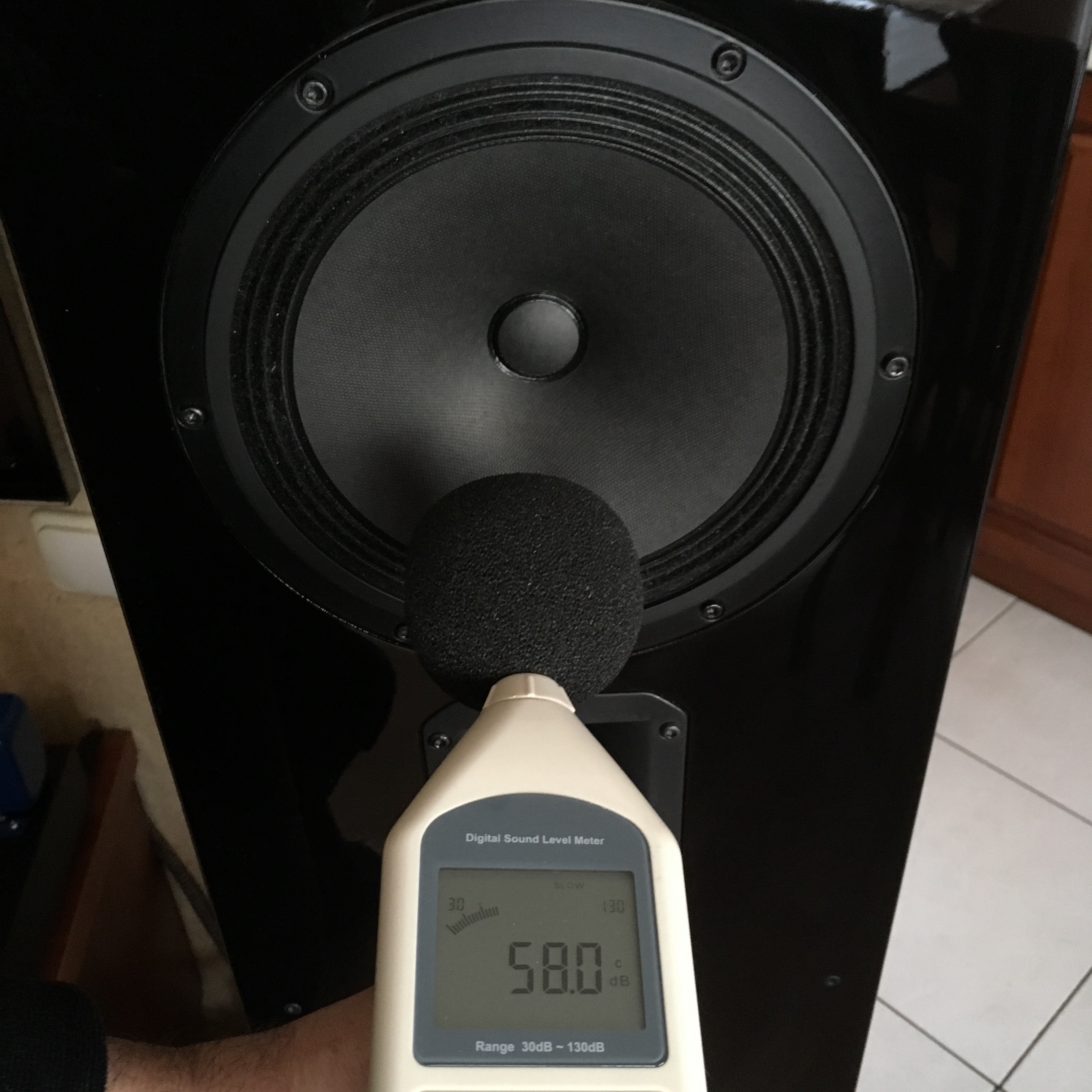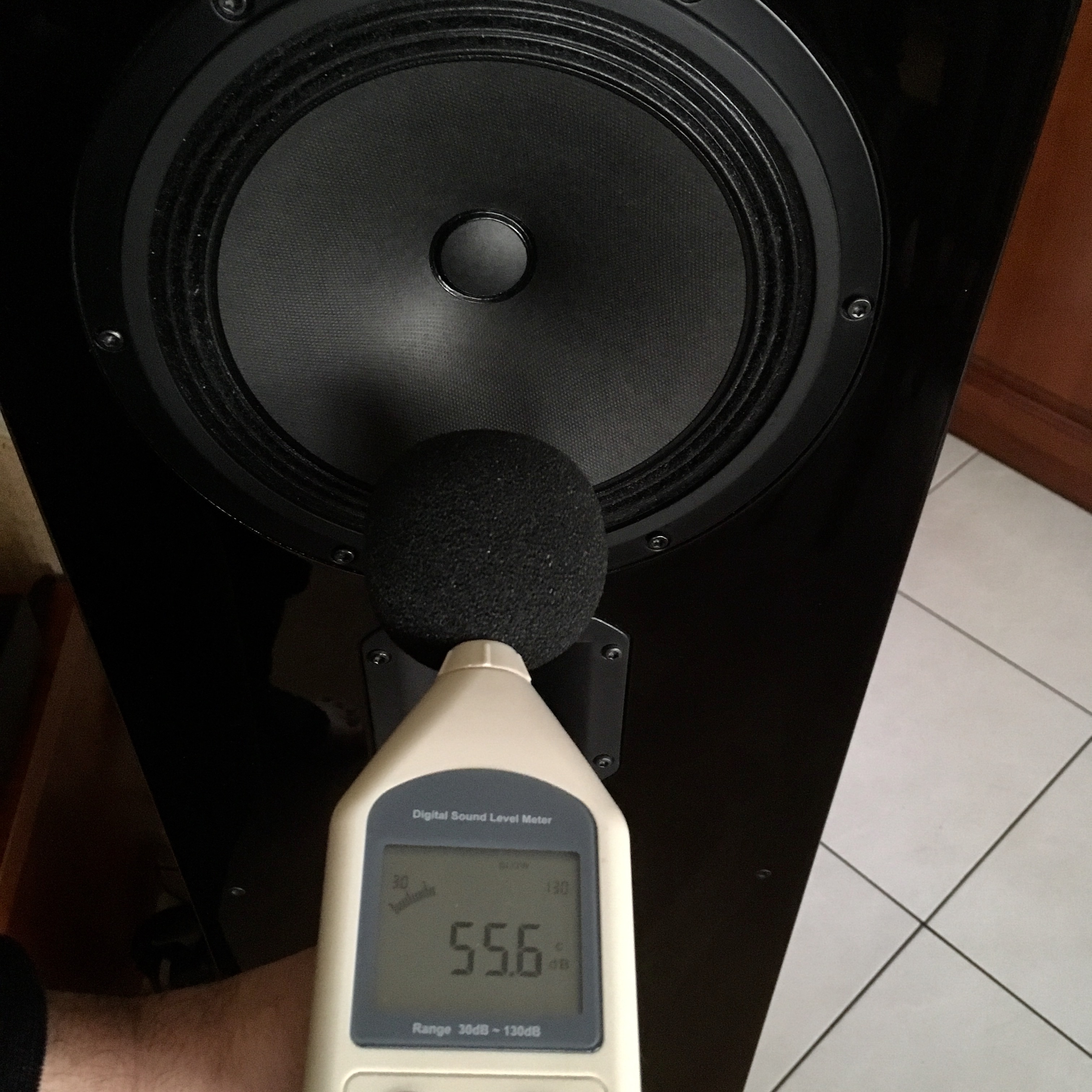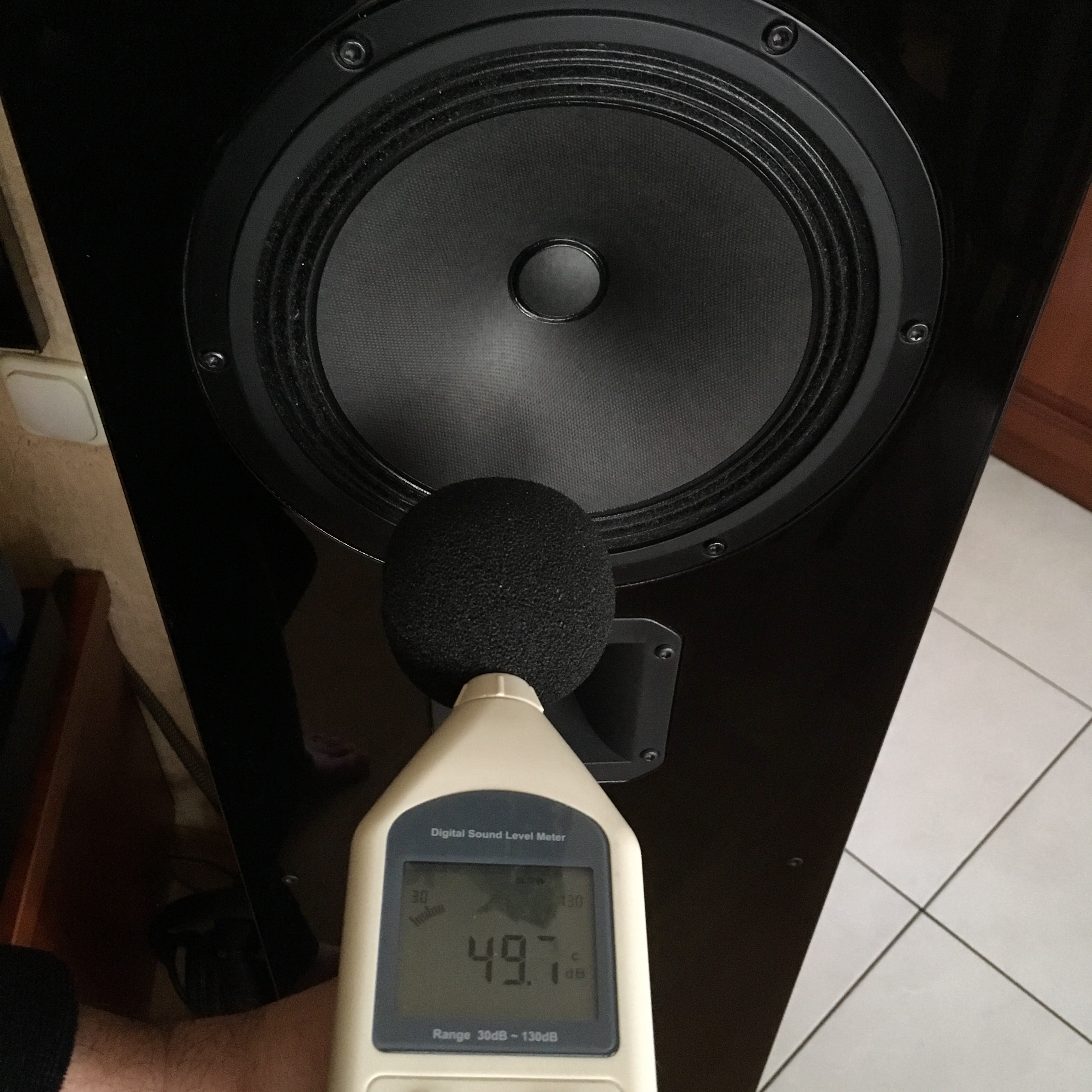 И я решил провести замеры шумомером, чтобы посмотреть на цифры. Измеряю тишину. С места прослушивания и вплотную к динамику (в широкополосном режиме).