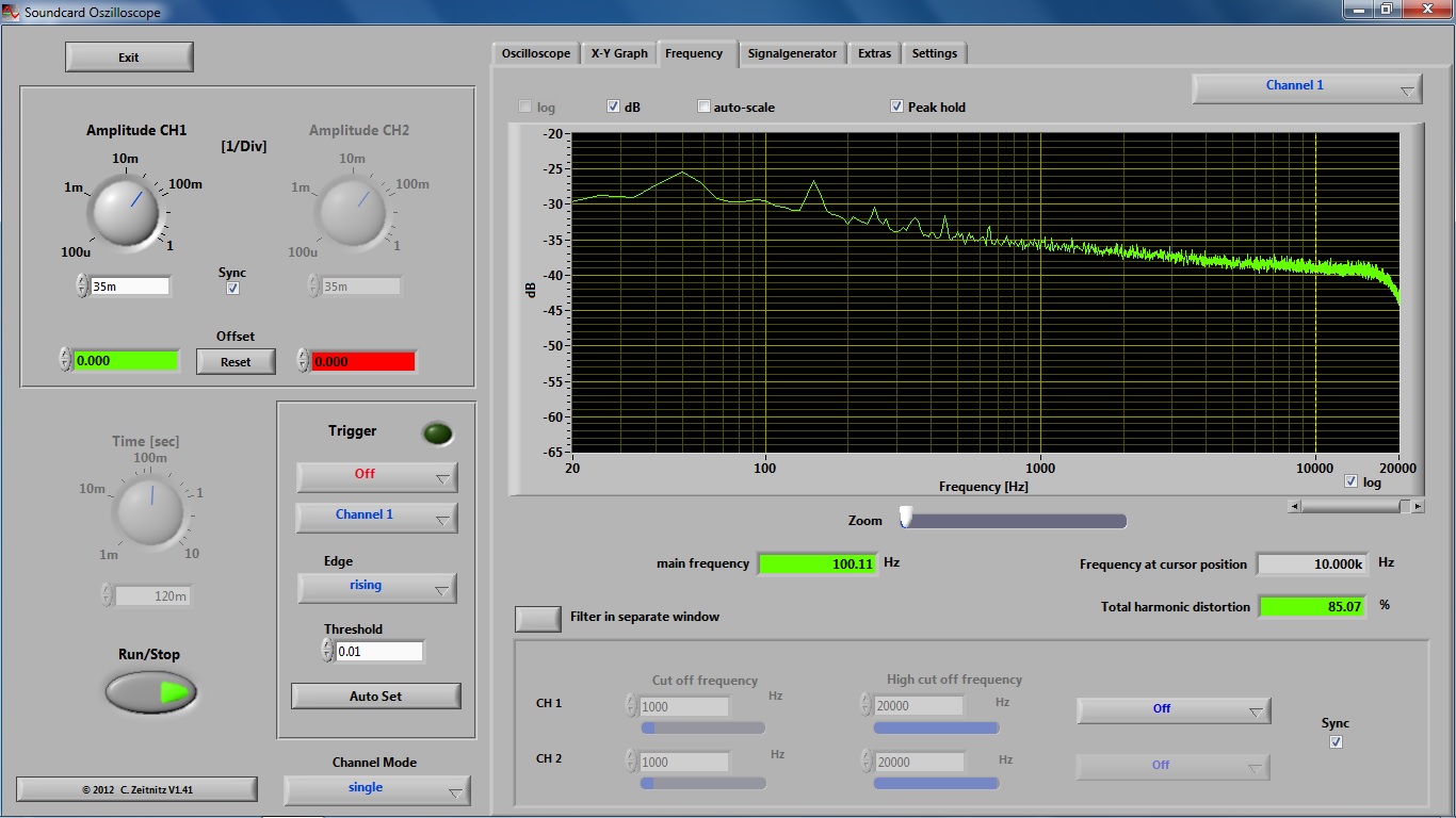 На этот раз я не отключал тонарм и не коротил входы. Ноутбук подключен через предусилитель (аттенюатор на максимум), затем фонокорректор, затем Piccolo, на котором SME 3012 с DENON DL103.