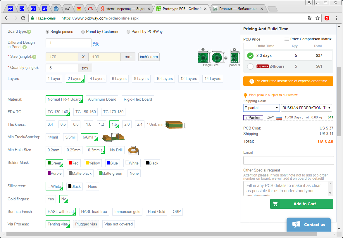 Пересылка получается дороже, чем у PCBWay, суммарно примерно также выходит, но вот это "бесплатное" золочение меня смущает.