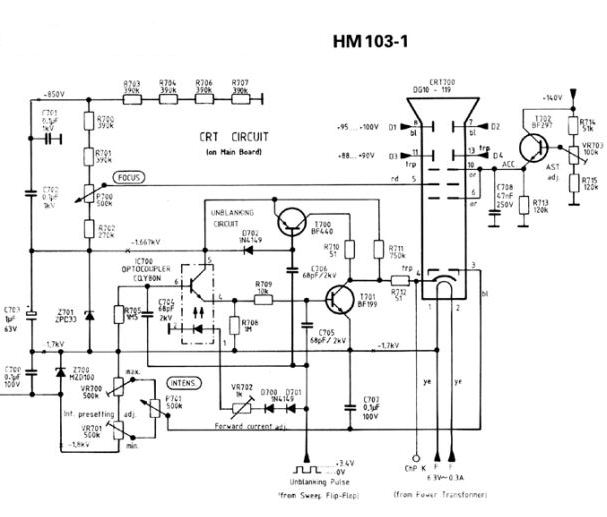 2. По каким-то причинам открыт (пробит) транзистор IC700. Можно ли посмотреть ток через VR702? Может, со стороны Unblanking pulse есть какая-то постоянка, зажигающая светодиод оптрона?