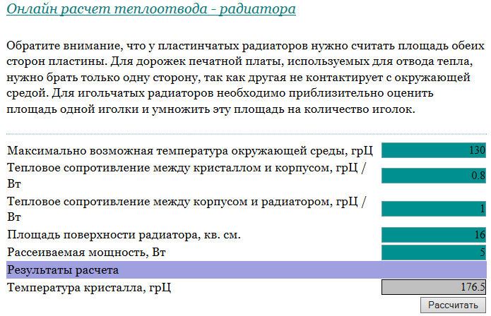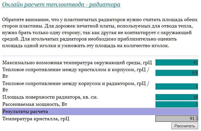 ... я тупо пользуюсь калькулятором для расчёта "Онлайн расчет теплоотвода - радиатора".