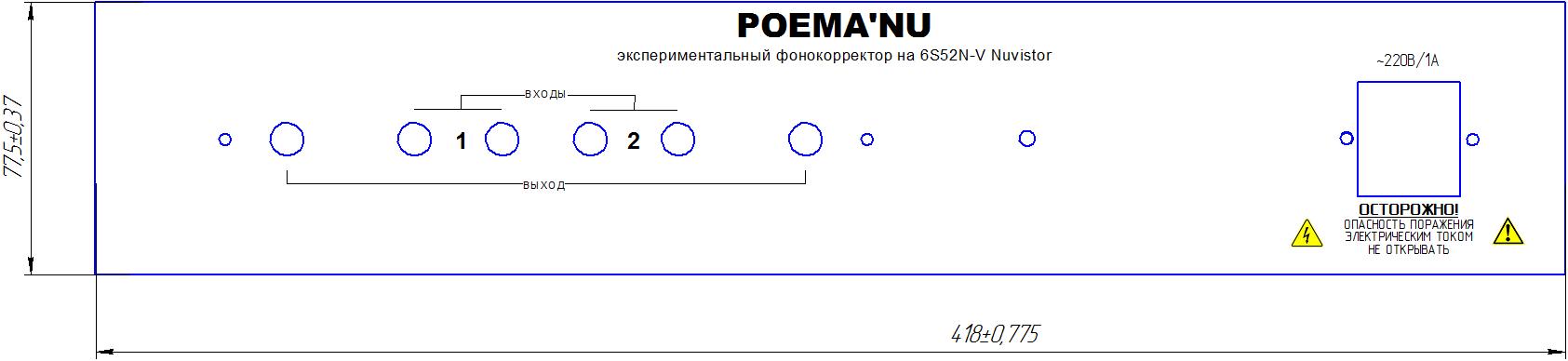 Я сейчас, как раз шильду для этого корпуса готовлю. Так написал: 6S52N-V Nuvistor стерео-фонокорректор с двумя входами