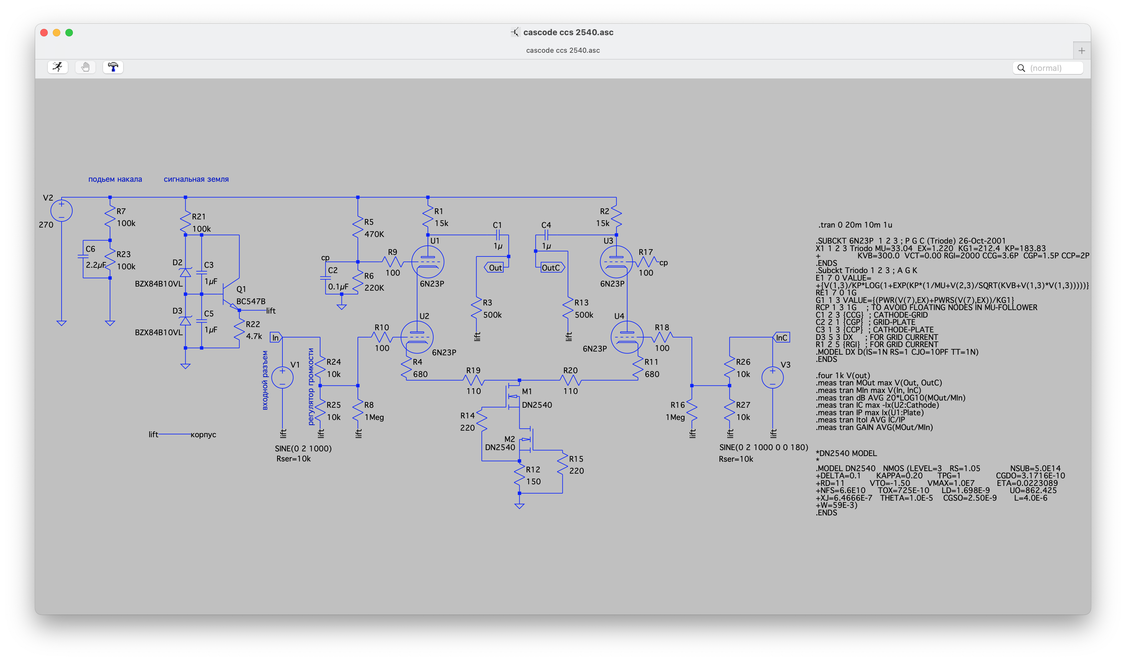 Половинки балансного каскада имеют одинаковое напряжение на верхних анодах? (Иначе говоря - какая разность потенциалов между точками подключения первичной обмотки?)