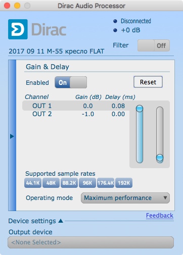 Но, программа Dirac для miniDSP немного другая. И что обидно, при инсталляции она заместила мою версию для настройки компьютерного Dirac. Поэтому, сравнить две версии у меня наверное не получится, хоть пара дней триала и осталось.