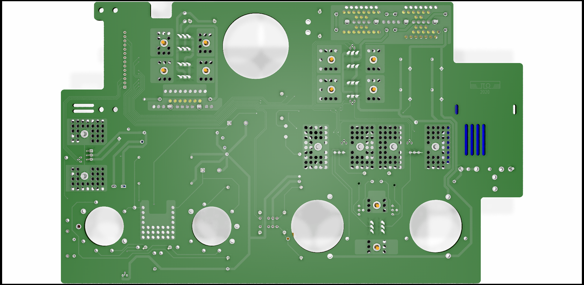 Размер плат 279х170мм. Отверстия для крепления будут сделаны по месту, пространство, куда они должны попасть отмечены на плате полуокружностями. Цвет платы - зелёный. Цвет шелкографии - белый. Финишное покрытие - лужение.
