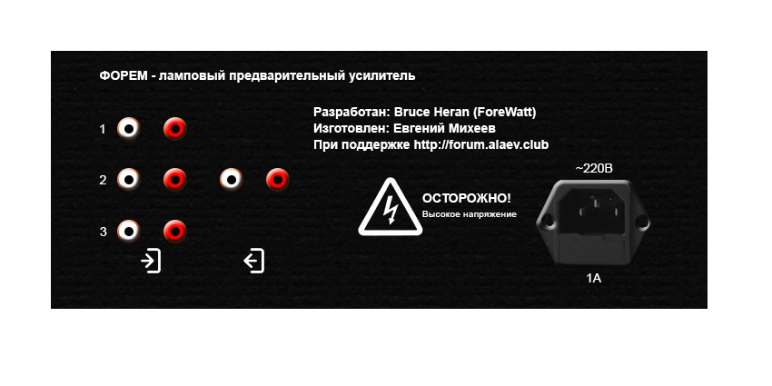 Позиции переключателей отметить точками (без подписей). Например, выключено - пустая точка (граница), включено - заполненная точка. В селекторе входов, естественно. все точки сделать полными.