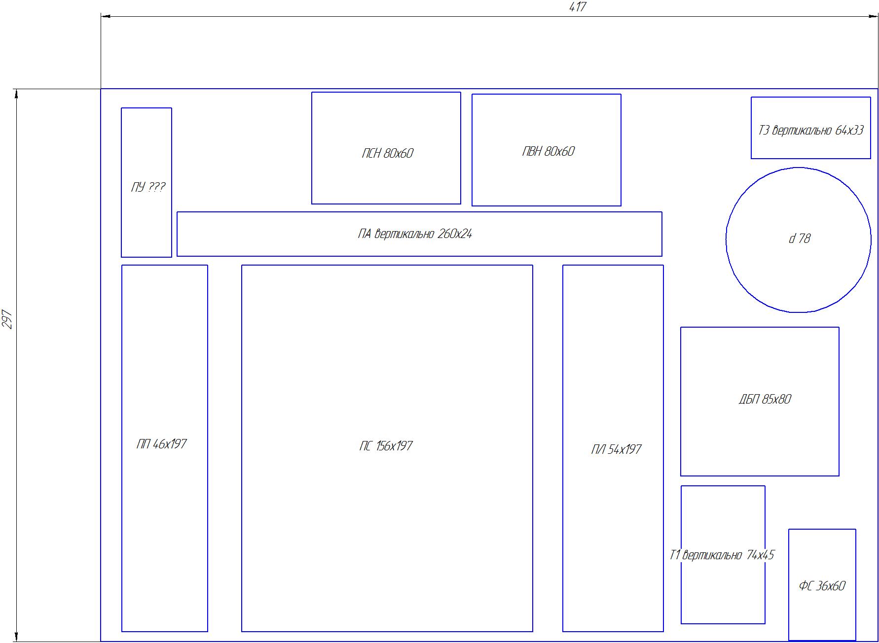 "ПА" вертикально встала очень удачно. И крепить есть к чему (стенка экрана)."ПС" и "ПН" тоже встали в центр хорошо. Как под них там ниша приготовлена была. Но, все очень зажато получилось. Я попозже прорисую это все с корпусами переключателей (найду только их размеры) и светодиодом индикатора (его внутреннего размера у меня нет). Будет нагляднее.
