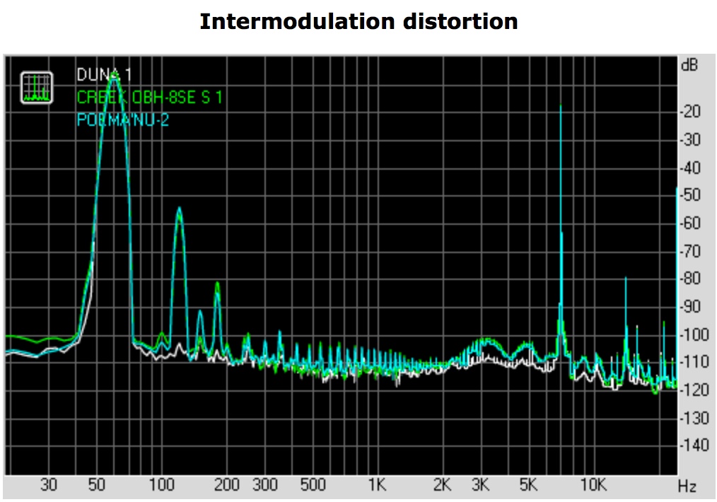 Для сравнения я выбрал тест серебристого фонокорректор CREEK. Он получился при сопоставимом уровне тестового сигнала. Все тесты проведены сигналом с медиаплеера.