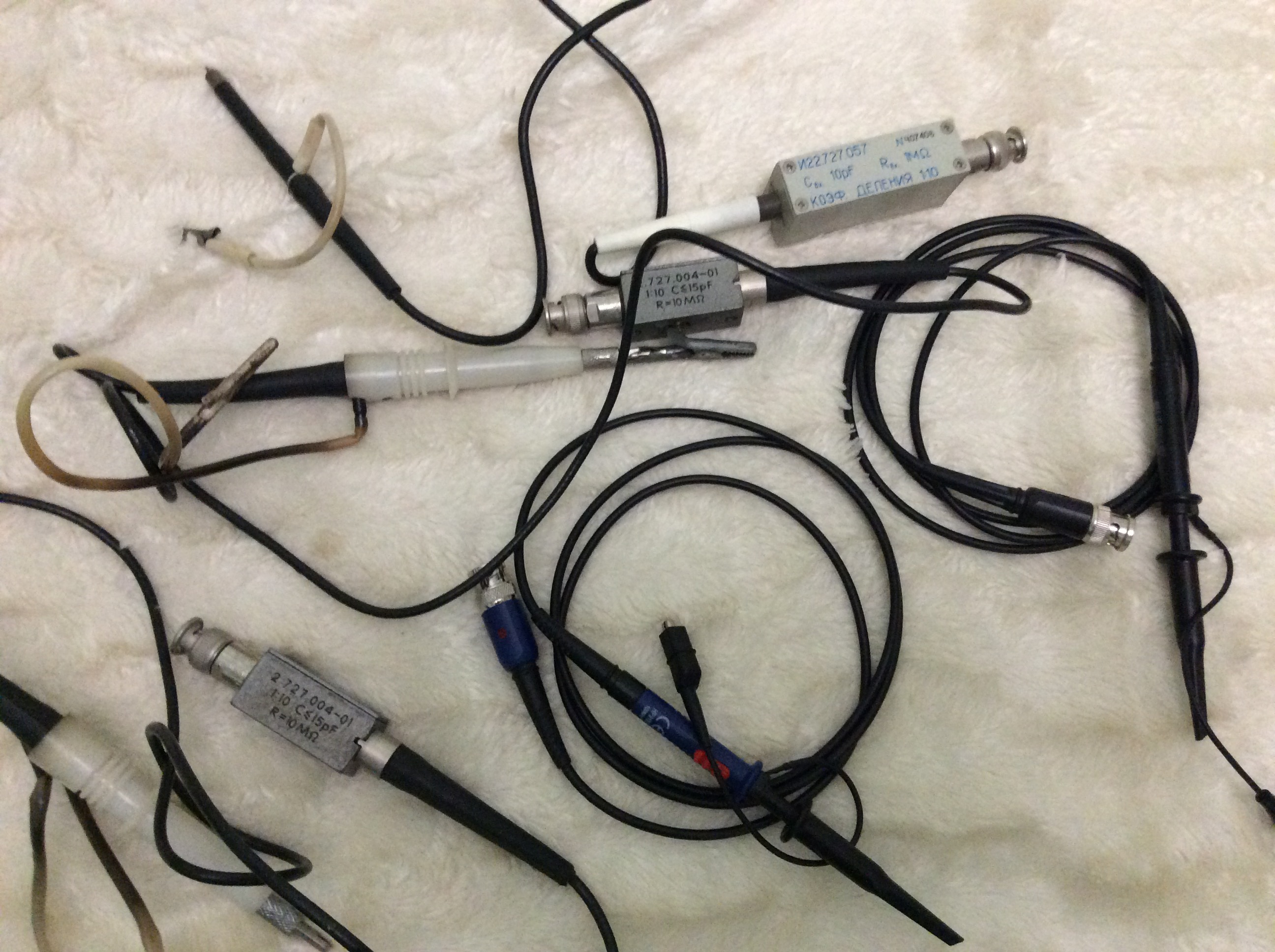 пользуюсь покупными проводами для осциллографа. С переключателем: 1:1; 1:10; КЗ. Хотя есть и старые made in USSR. Типа 5 пФ. Хорошие. Но они дубовые, толстые, не согнуть. Достану, попробую ими. Вот и проверю это предположение.