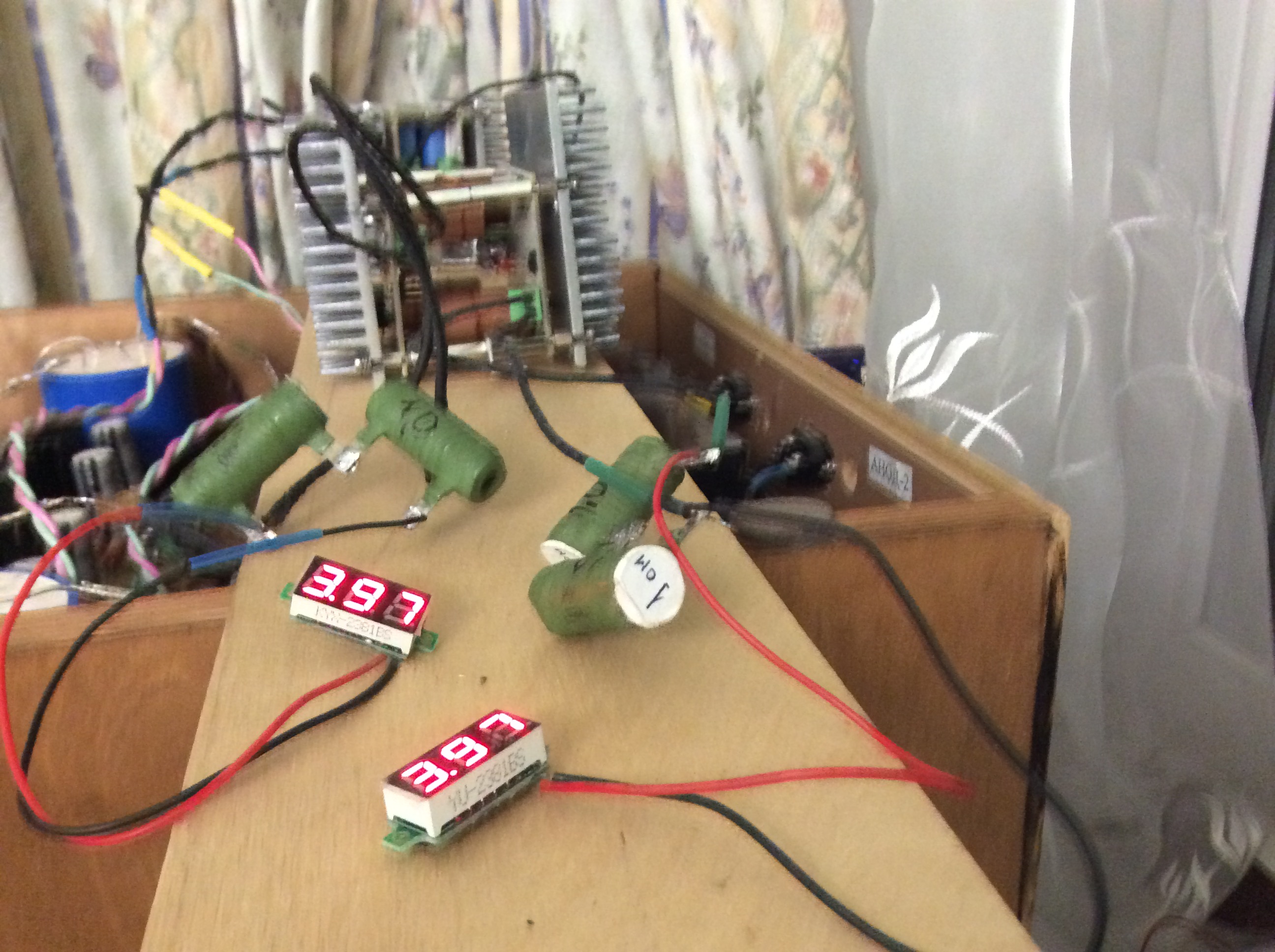 Тут мысль опять посетила, от которой я отмахивался ранее. Изолировать обе платы с радиаторами друг от друга, хотя бы одной пластиковой монтажной стоечкой. У меня развод плат друг от друга двумя стойками разведён. Хотя ранее я сам от этой идеи отказался, из за боязни её деформации под воздействием тепла. Но по ходу сильно греются нагрузочные сопротивления. А радиаторы очень слабо. Хотя долго не гонял.