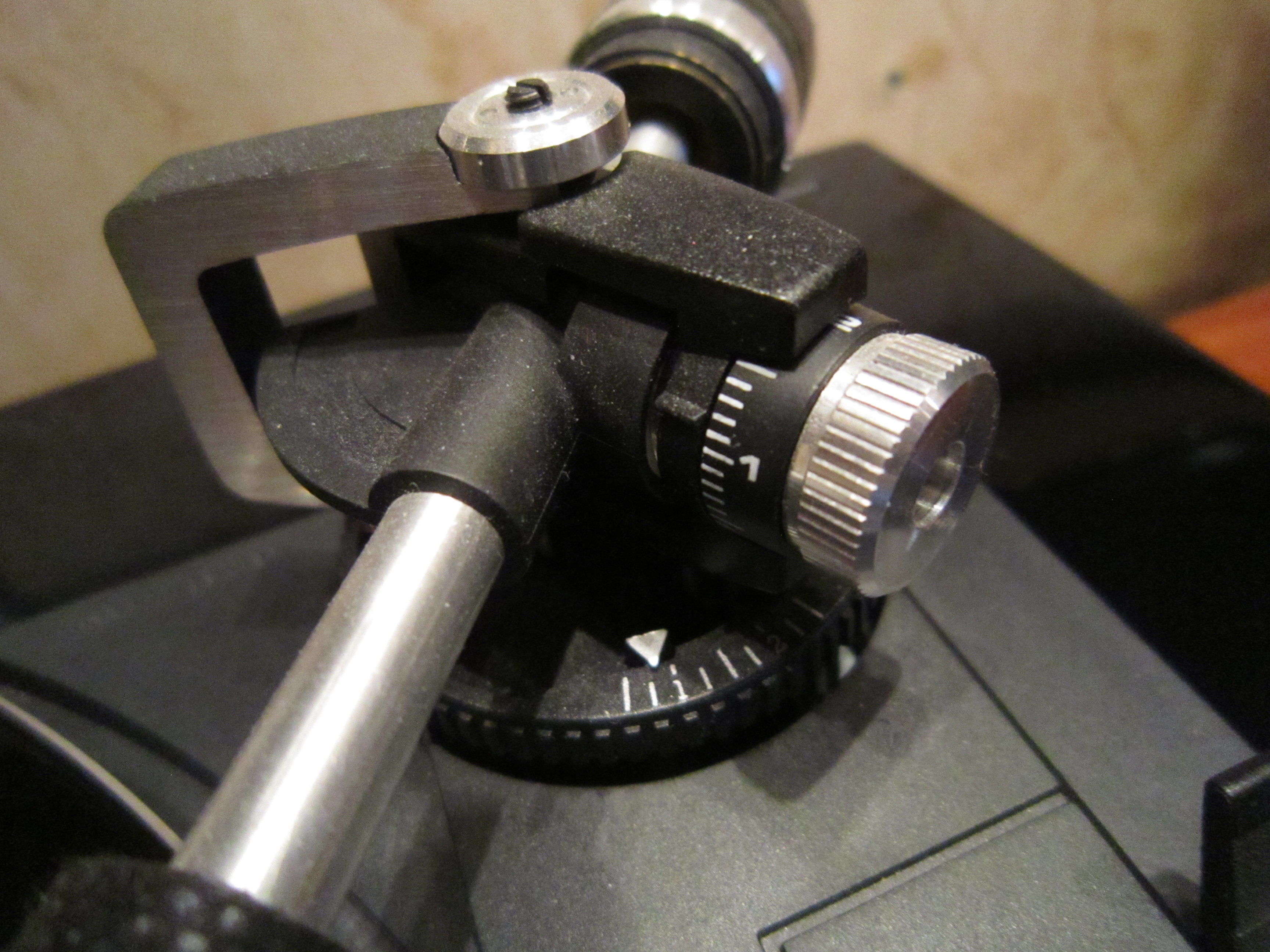 Для начала с помощью электронных весов и треков пластинки "Hi-Fi news" подобрал прижимную силу и антискейтинг. Пробовал уйти в увеличении, но в итоге остановился на наиболее правильном (на мой взгляд) сочетании - минимальная прижимная сила (с подобранным под нее антискейтингом) при сохранении устойчивости иглы на дорожке. Значения получились чуть ниже рекомендованых - 1,25 гр. (прижим) и 0,6 (антискейтинг):