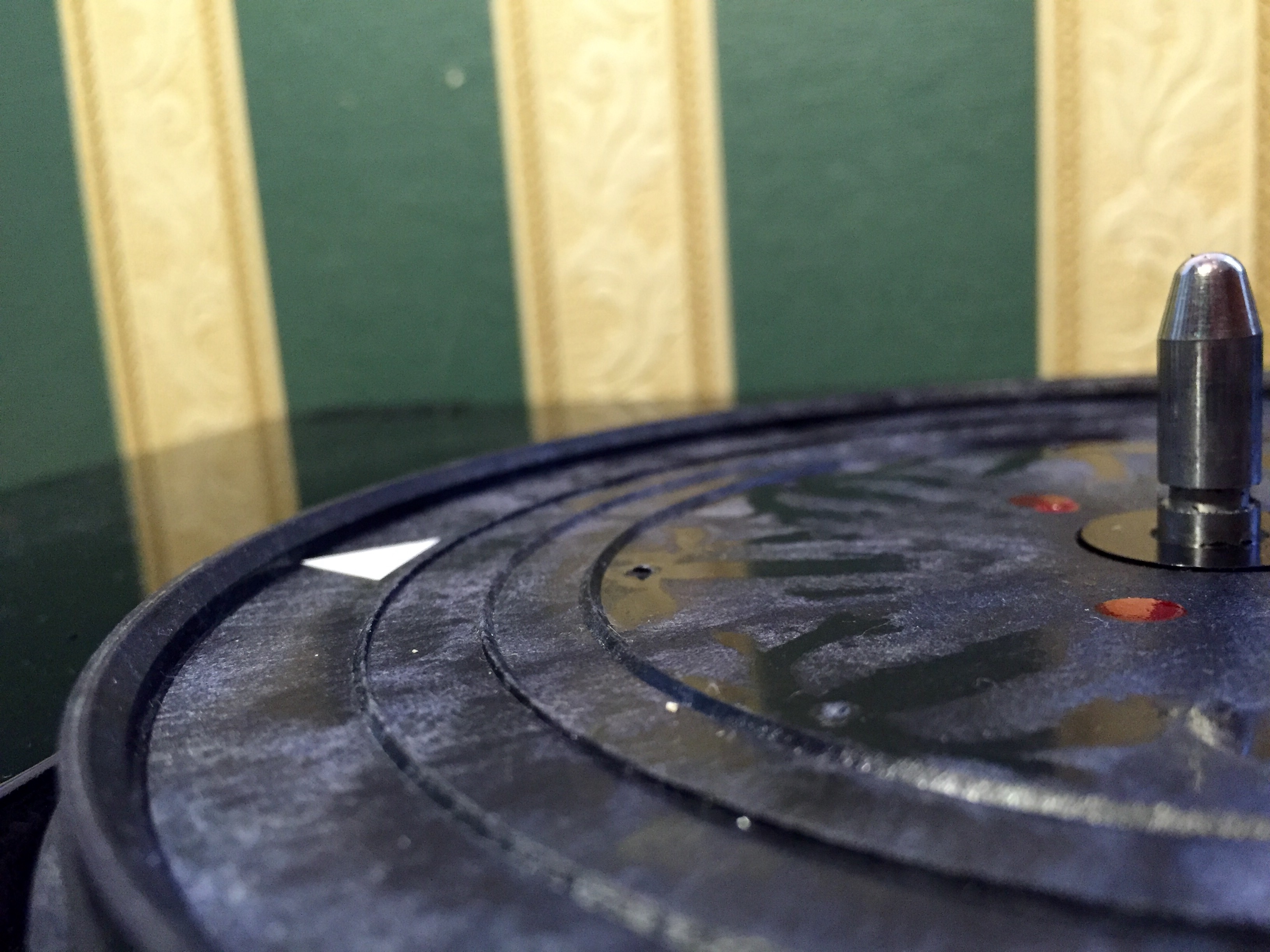 После нескольких прослушанных пластинок стало ясно - звук получился хороший. Пока буду слушать так. Однако, поворотный диск без мата смотрелся как-то голо... Покрасил