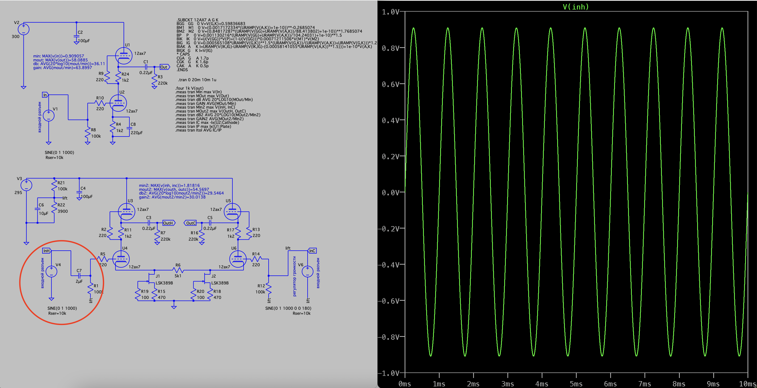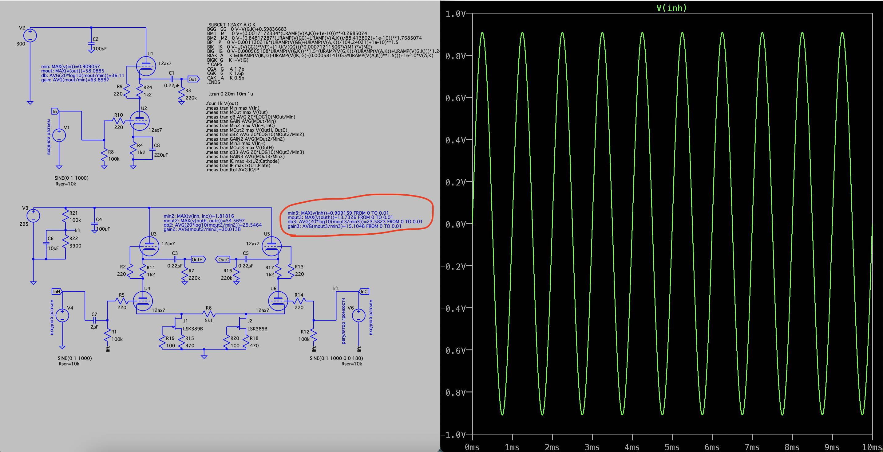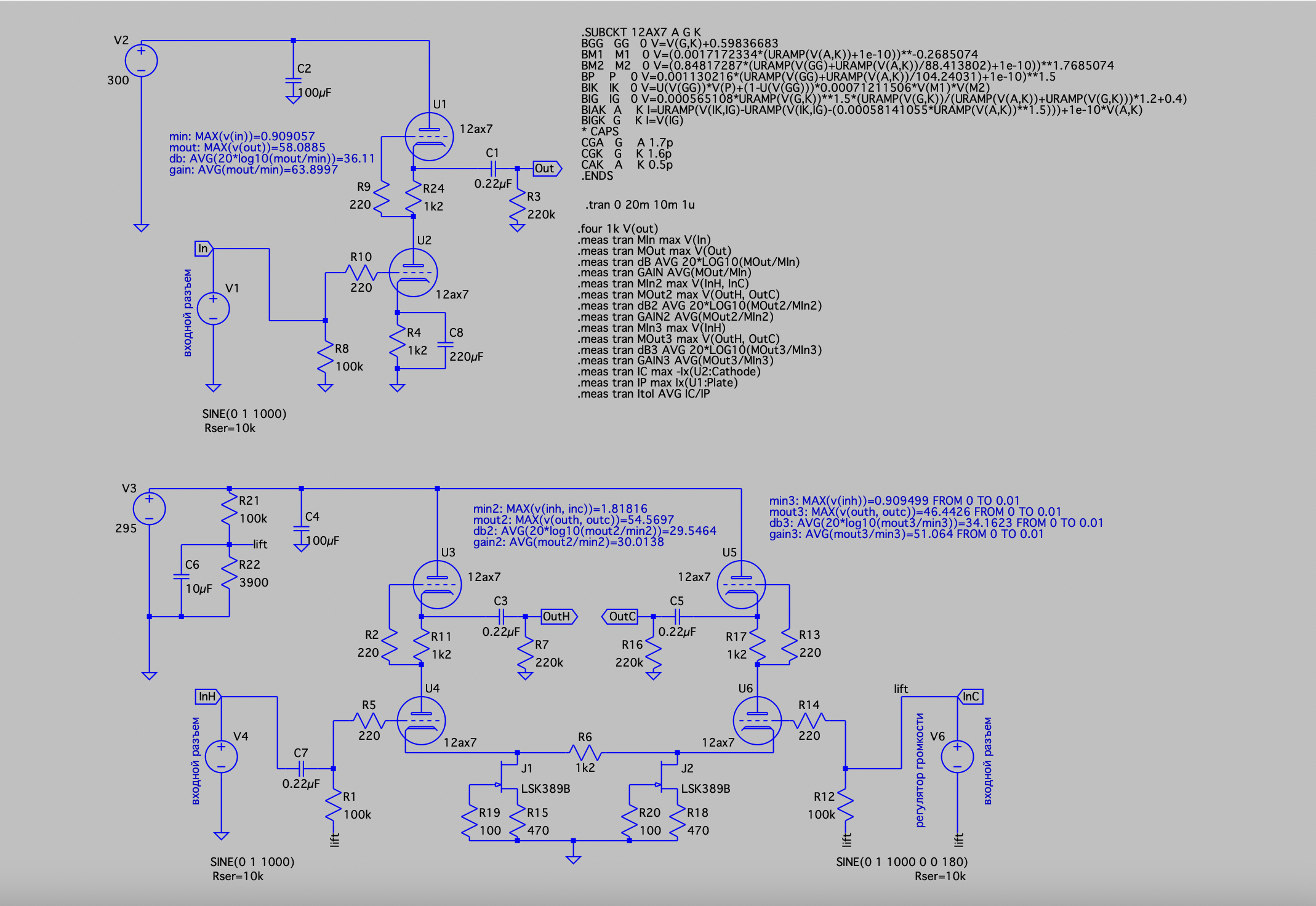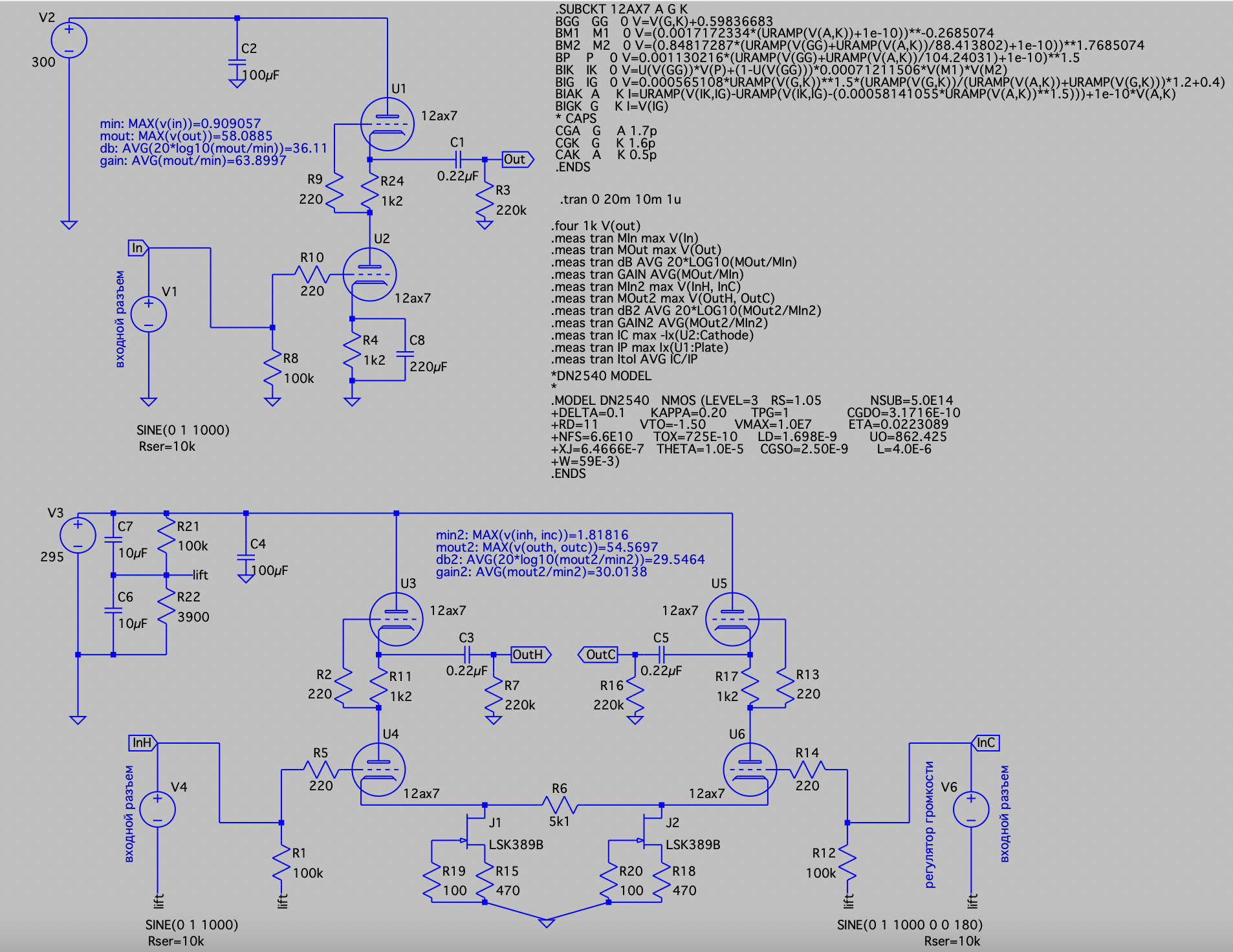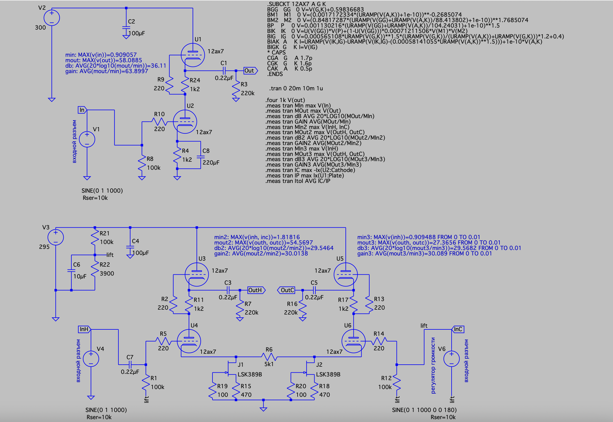 2. Почему такое низкое усиление? Во-первых, почему в формуле mout3 используется только outh? У нас вход небалансный, но выход-то точно балансный! Мы для этого и ставим источники тока в хвостах. Усиление можно повысить уменьшая R6, если нужно.