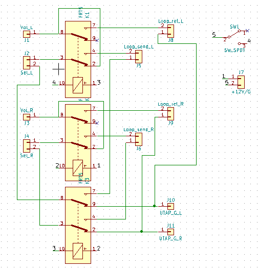 Далее, реле Вы сделали неравноценными, поэтому есть смысл оставить симметричность только для реле, выполняющих коммутации сигнала. Коммутацию земли можно вынести отдельно.