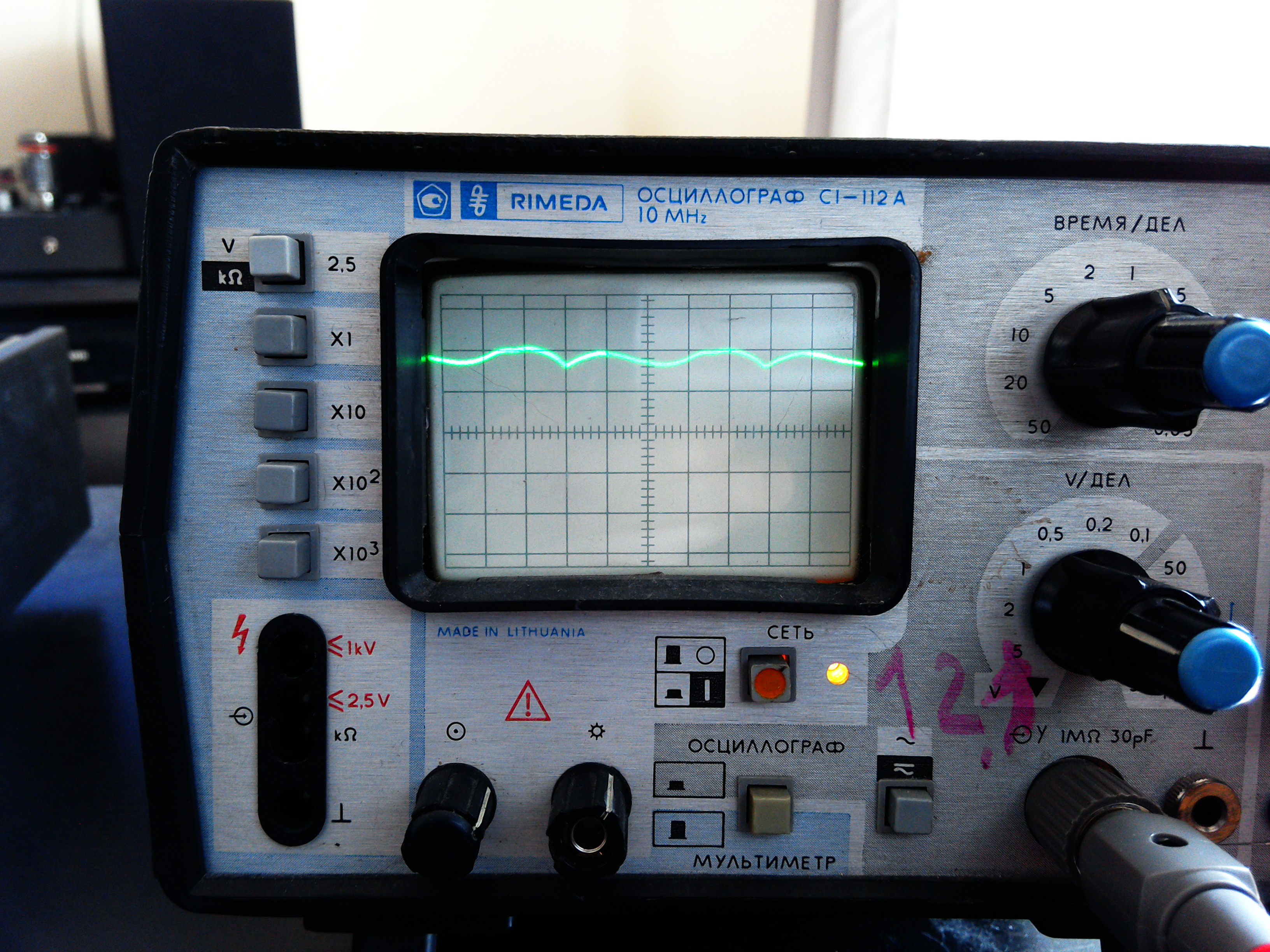 У меня на щупе есть делитель 1|10poty писал(а):Я не помню предел напряжения закрытого входа Вашего осциллографа...