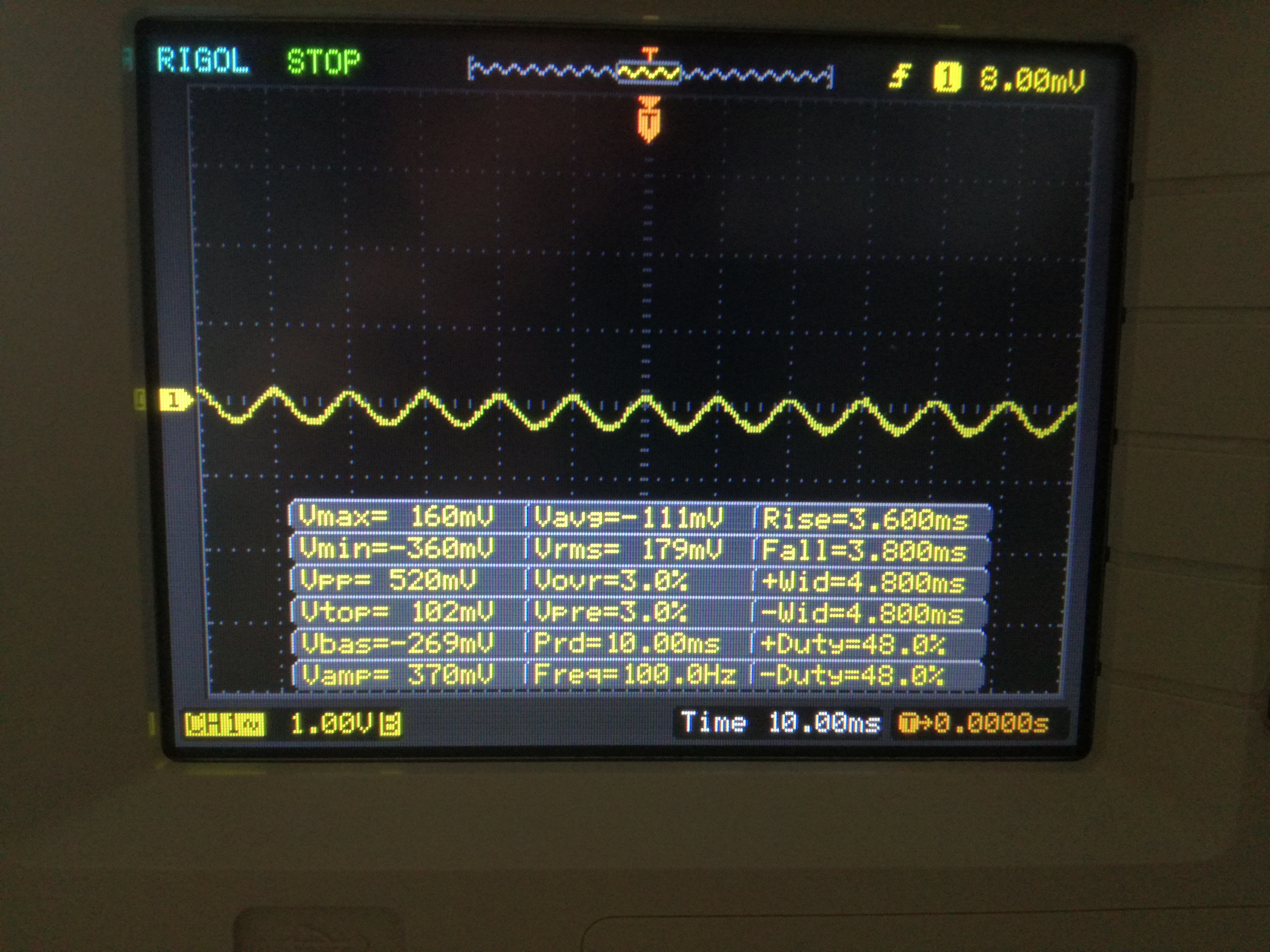По накалу. Я считаю, что сбивать здесь ничего не нужно, потому что неизвестно какие лампы будут использованы в будущем, напряжение у нас стабилизировано, а вот ток может быть разным, что повлияет на ситуацию. Меня несколько удивила большая "пила" на выходе стабилизатора, было бы интересно посмотреть откуда она пролезает. Для накала это непринципиально, но, я так понимаю, планируется использовать эту конструкцию и далее.