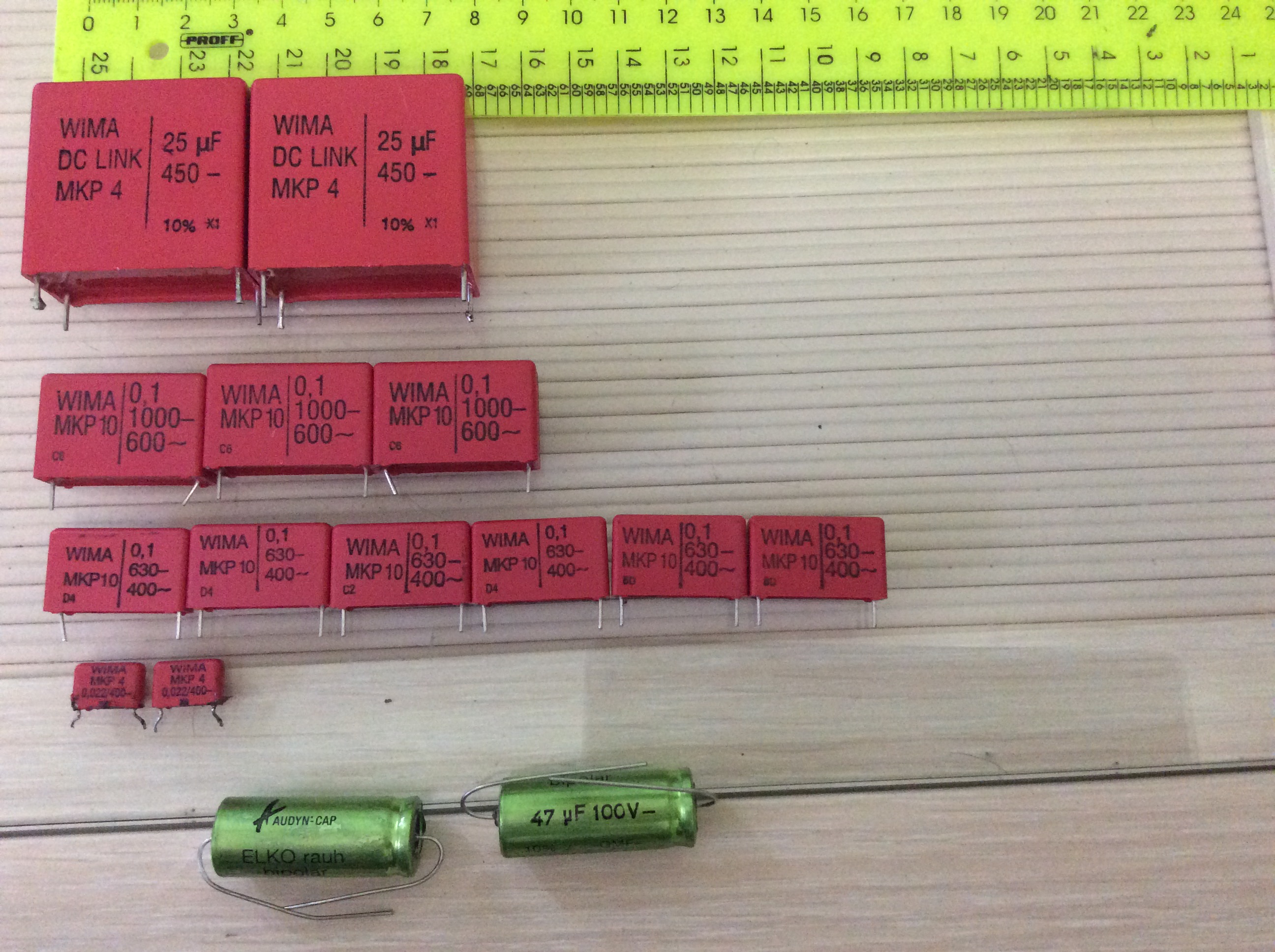 К чему я эту галиматью излагаю. Есть у меня PIO конденсаторы на 2-4 uf 400, 500, 600 V марки TCC. Для блоков питания самое то. Самое главно не гигантских размеров, типа наших МБГВ ( они у меня тоже есть и прекрасно работали, ну очень большие, а главное тяжёлые, пока не обзавёлся CLARITY CAP 200uf 630 V. )