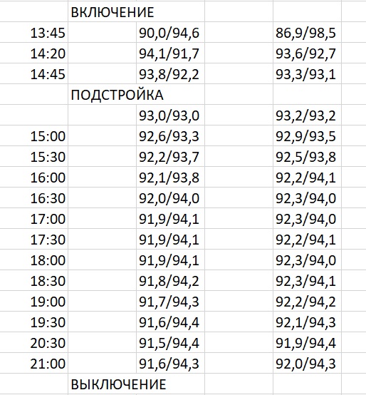 - непосредственно после регулировки происходит заметный скачек параметров, потом плавность возвращается;