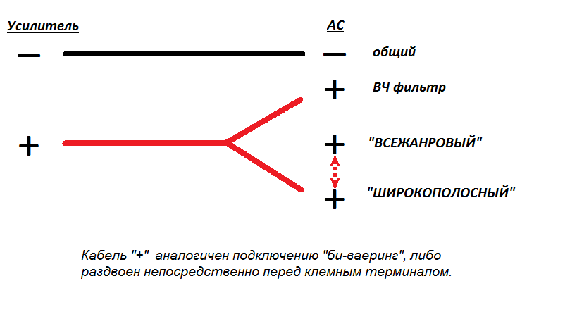 Я думаю (если есть такая возможность), нужно делать развилку как можно ближе к контактам (своего рода импровизированная перемычка). Для ВЧ лучше как можно более короткие провода.Роман Мирошниченко писал(а):Плюсовую жилу следует тянуть двойную прямо от усилителя или достаточно раздвоить ее непосредственно перед терминалом?