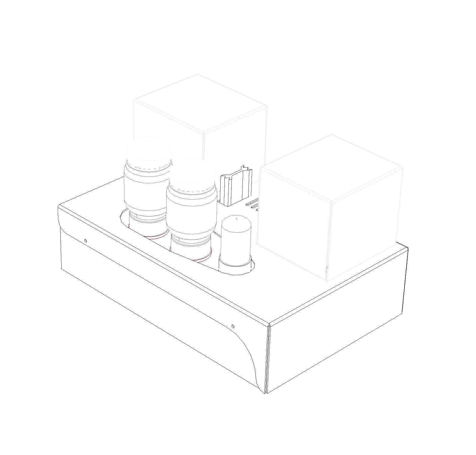 Мне такое упрощение нравится. Опять же, покрытие несущей панели декорации в хром делает ее наличие обоснованым. Нежели черная поверхность, закрывающая черную же поверхность. Так же я предполагаю, что в хроме корпус не будет выглядеть таким массивным, а отражение в нем надстроек придаст интересность (сужу по опыту своих предыдущих проигрывателя и усилителя AURA). В свою очередь черный цвет кожухов замаскирует перфорацию на них, которая необходима для охлаждения трансформаторов.