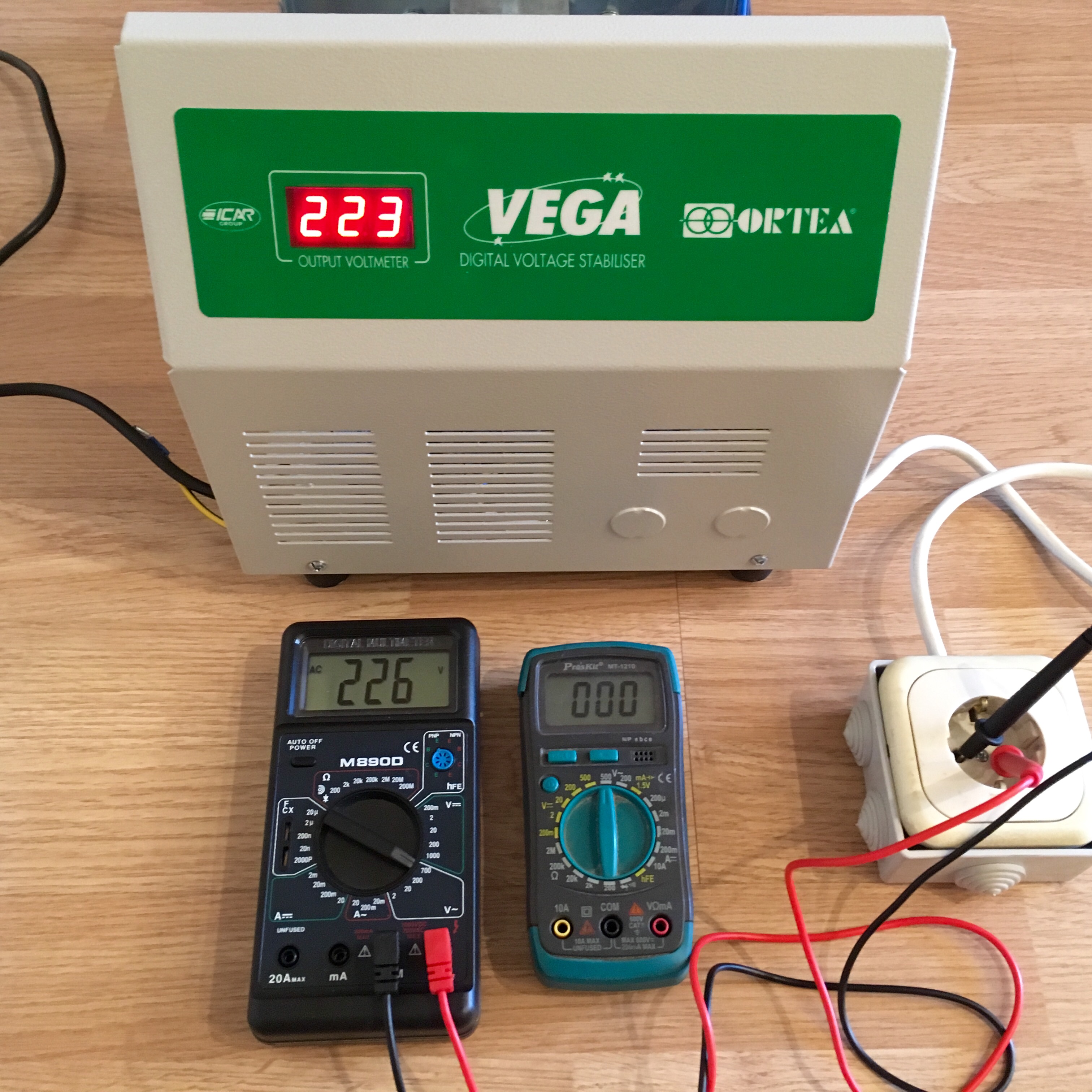 Мультиметры хоть и дешевенькие, хоть их показания и отличаются друг от друга, все же цифры получаются близкие и обе отличные от той, что на дисплее Ortea.