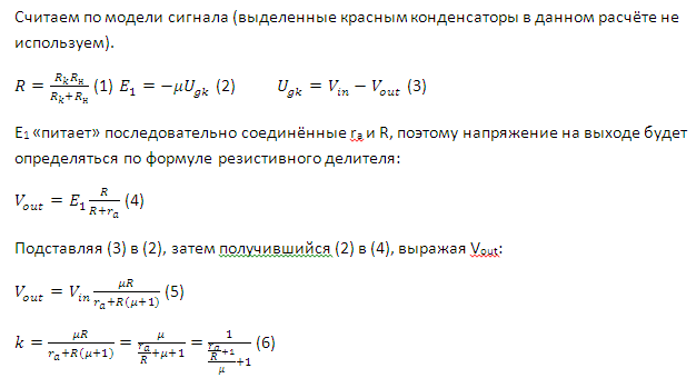 Допустим, последний расчет я производил в условиях 50 вольт на сетку. (155-50-4=(примерно)100В на лампе; актуальное напряжение сетка катод по ВАХ =-2В; сопротивление в катодной цепи = 8,7кОм; импеданс цепи =