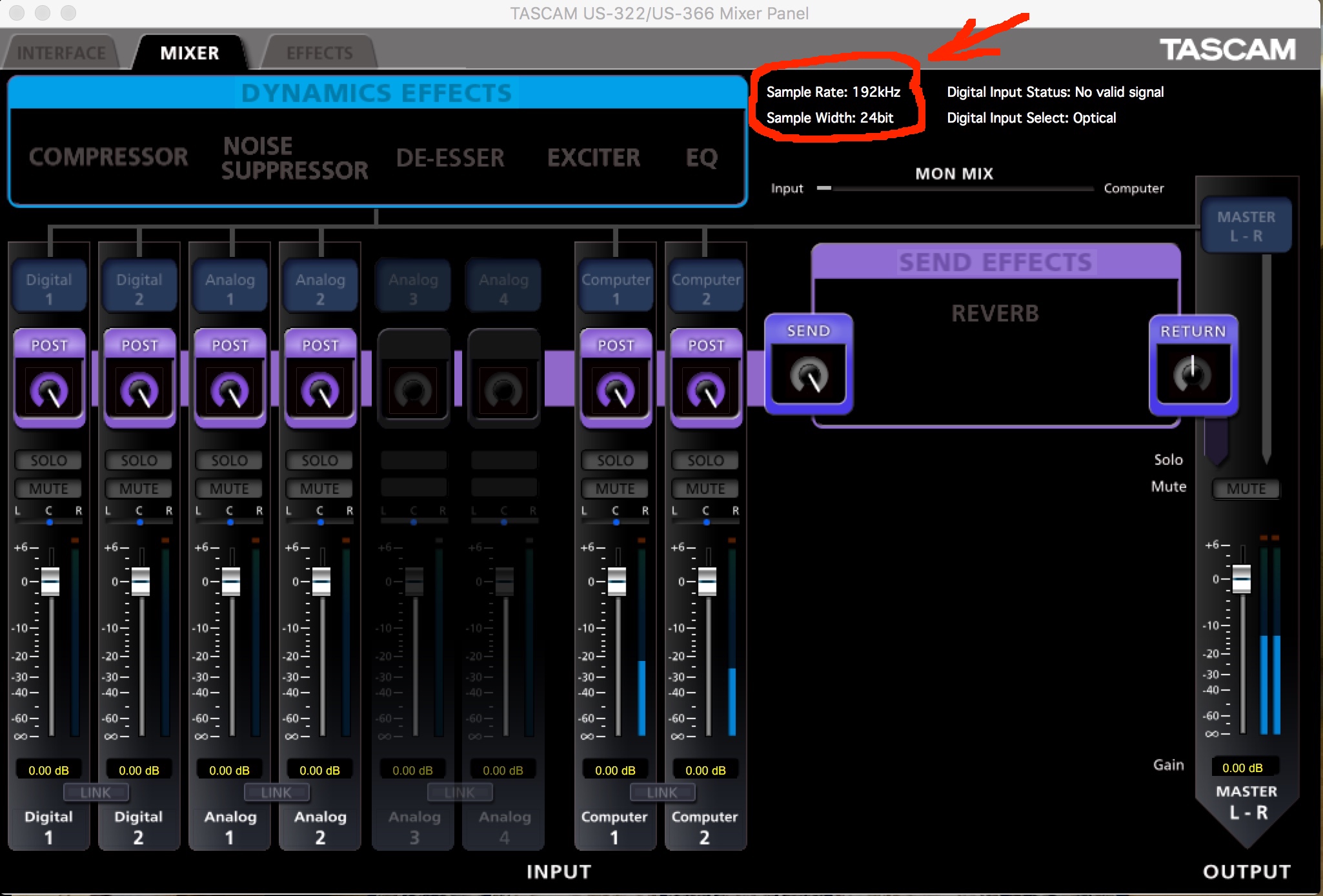 - Воспроизведение сигнала с внешних источников (когда он заводится и выводится через US-366) с частотой дискретизации 192 кГц. не столь красиво, чем эта же схема с частотой 96 кГц. Звук с дискретизацией 192 кГц. у меня получился жесче.