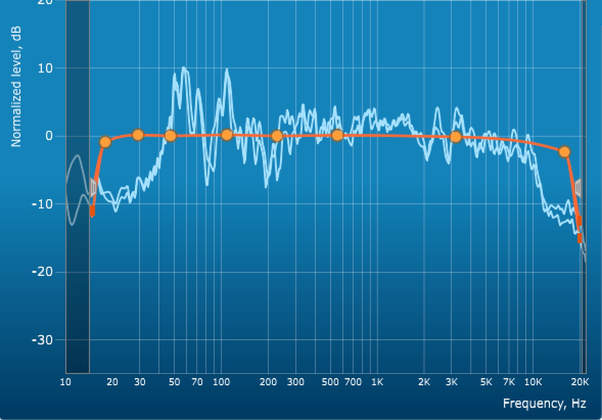 В REW измерения этой акустики в данном помещении я только что делал. Теперь сделал и в Dirac (это часть процесса построения фильтров). Графики примерно схожи: Для начала не выпендриваюсь, задаю плоский "target" (целевую кривую): Расчетный результат: Очень красиво должно быть!
