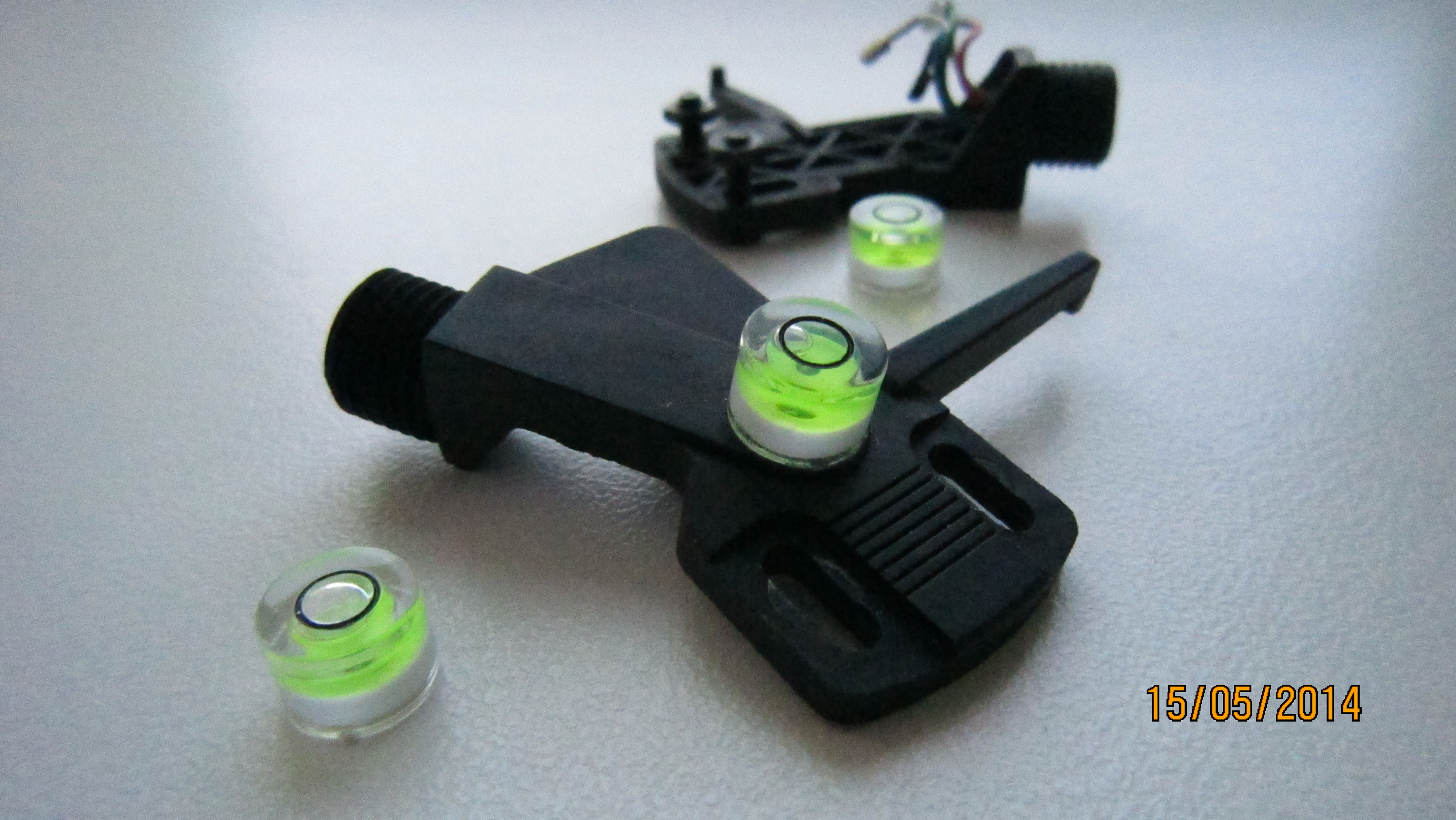 Т.е., выставив по уровню картридж Вы просто скрываете все неровности и неправильности установки тонарма. Он может быть кривой, косой, стоять под углом и т.п.Отверстие сделано с допуском и уровень лежит свободно. Т.е. шелл не оказывает на него никакого влияния. Уровень лежит непосредственно на верхней плоскости самого картриджа. Которая, в отличии от верхней плоскости шелла, идеально ровная( т.е. шелл убран из ситуации как фактор). Хочу отметить, что из всех поверхностей именно она и предназначена для горизонтального выставления. А верх шелла изготовлен без расчета на это. У шелла для этого сделан низ.