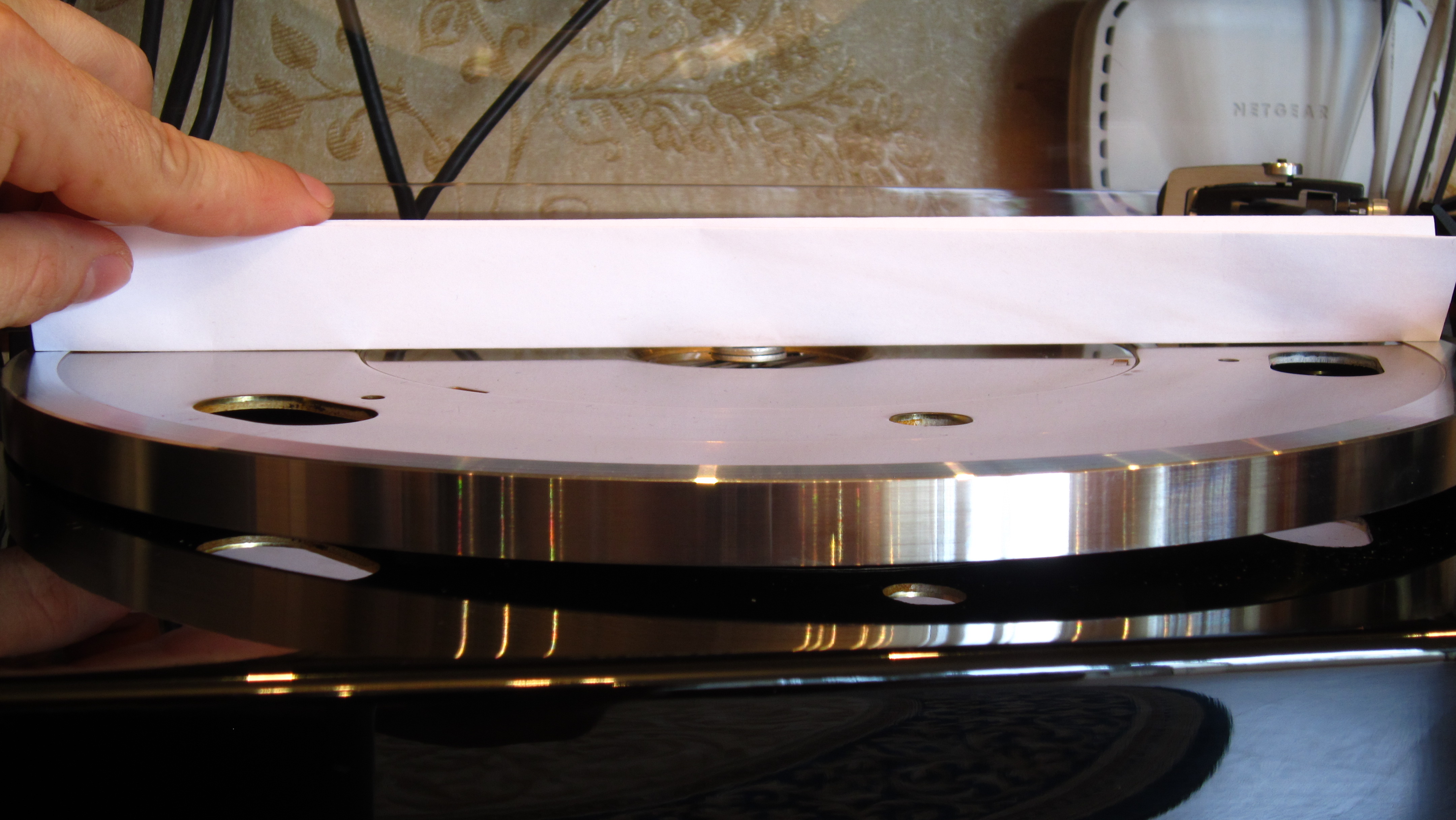 Мат отделяет пластинку от резонансов опорного диска, но клэмп прогибает его вместе с пластинкой. Я применил простое решение (возможно оно временное), подобрал шайбы на шпиндель, таким образом выровняв линию опор.