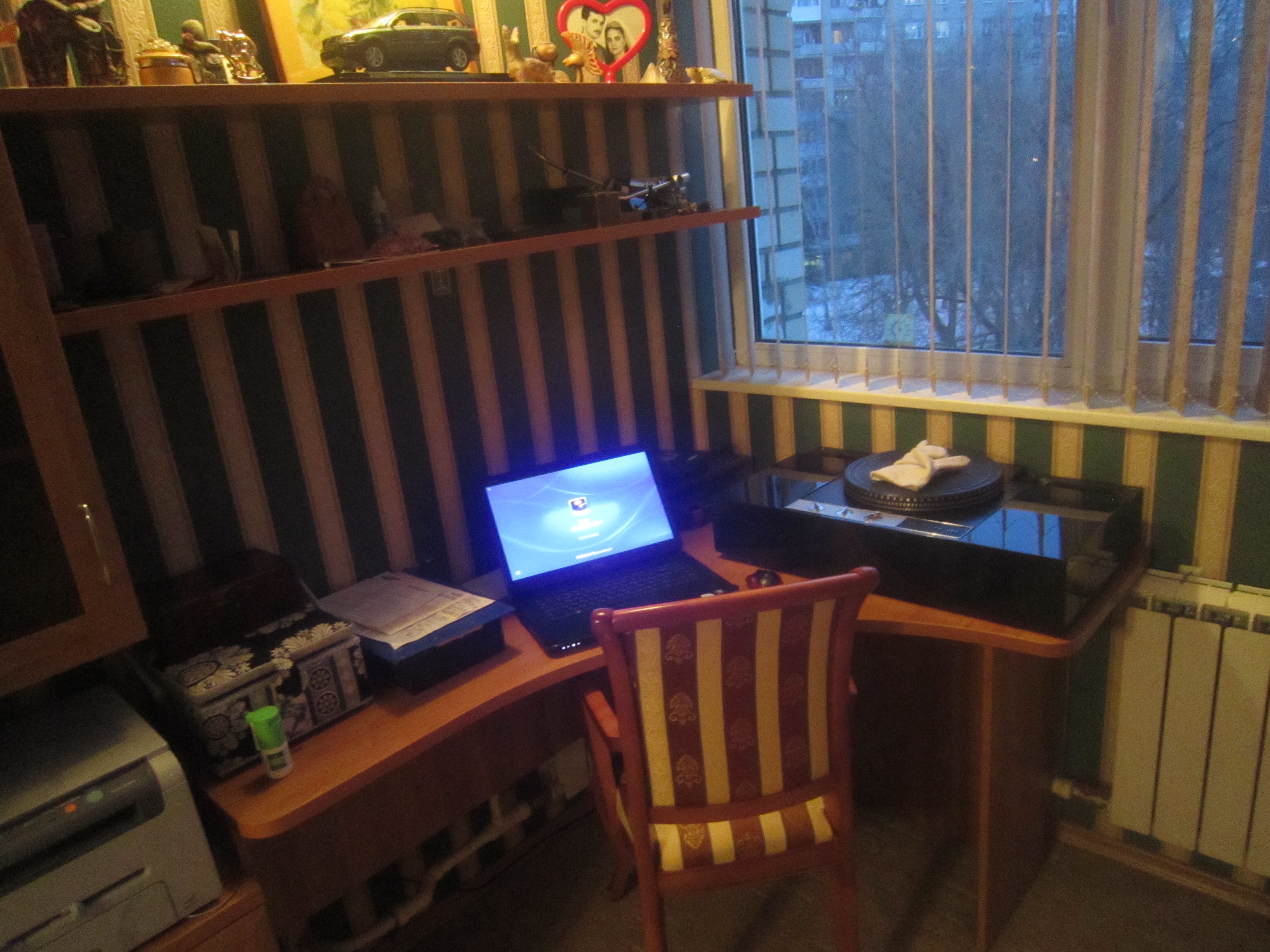 Но, просто распаковать и включить не получается. Нужно собрать и настроить. И ножки какие-нибудь сделать. Думаю, пока приспособить штатные от моего DUAL. Временно. Да и место установки нужно подготовить. Перестроить все на нем. Телевизор перевесить. Куча мороки, до Нового года не успеть... Пока проигрыватель поселился в кабинете. Буду собирать и настраивать.