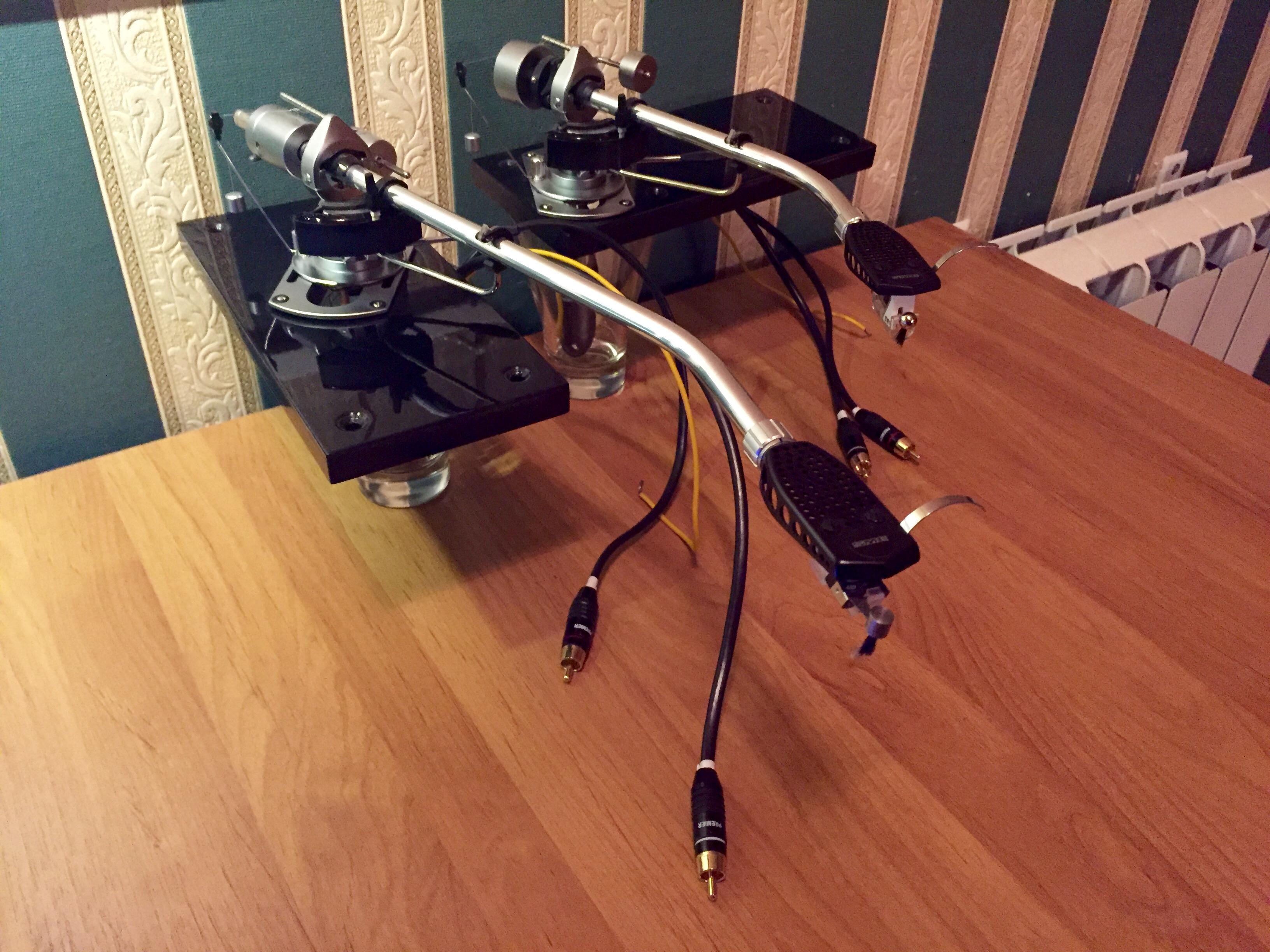 Очень хотелось бы написать, что "ЗВУК", после установки новых ножек, невероятно преобразился ... Увы, я этого не наблюдаю. Однако, заметный эффект все-таки имеется. Так как проигрыватель почти полностью разбирался (снимались и тонармы), предстояла кропотливая проверка настроек. Причем, начиная с самого элементарного - уровней горизонта тонармов и опорного диска. Я решил приурочить к этому и смену головок. Так вот, я совершенно случайно заметил, что если при воспроизведении пластинки постучать костяшками по тумбе, и даже по самому плинту проигрывателя, звукосниматель не реагирует на это. Раньше это сильно проявлялось черех акустику. Теперь же, я могу даже открыть/закрыть дверку или ящик тумбы. На мой взгляд, это показатель хорошей устойчивости проигрывателя на новых ножках.