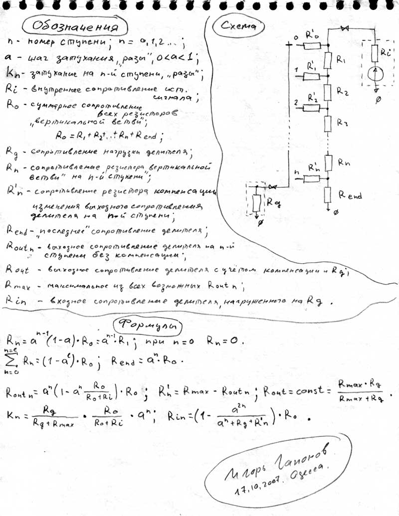 Если посмотреть внимательно на начало ветки, то есть несколько... назовём это "постулатов", из-за которых практика использования, допустим, аттенюатора Максима столь успешна. Это - относительно низкое выходное сопротивление источника и относительно высокое - усилителя.