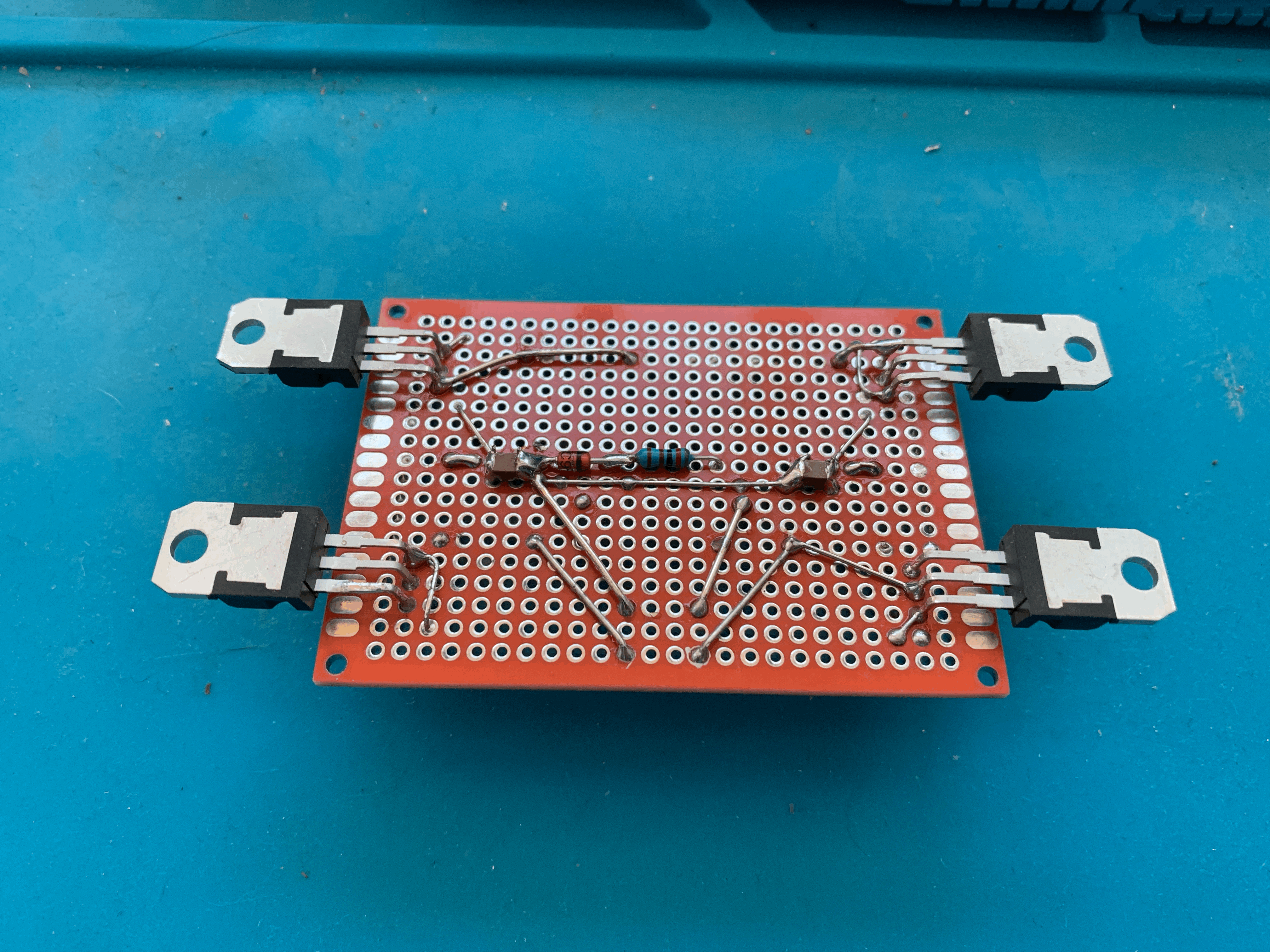 Убираем землю из выходного каскада! И подключаем её к потенциалу +130В относительно земли питания драйвера. Этот потенциал можно получить разбив резистор R21 на 42кОм и 58кОм и поставив в точку между ними конденсатор на землю. На будущее замечу, что этот конденсатор тоже нужно убирать потом. Всё, лестница напряжений получена.
